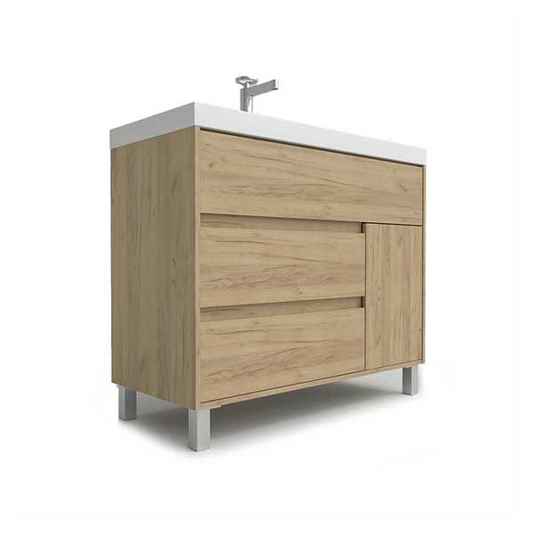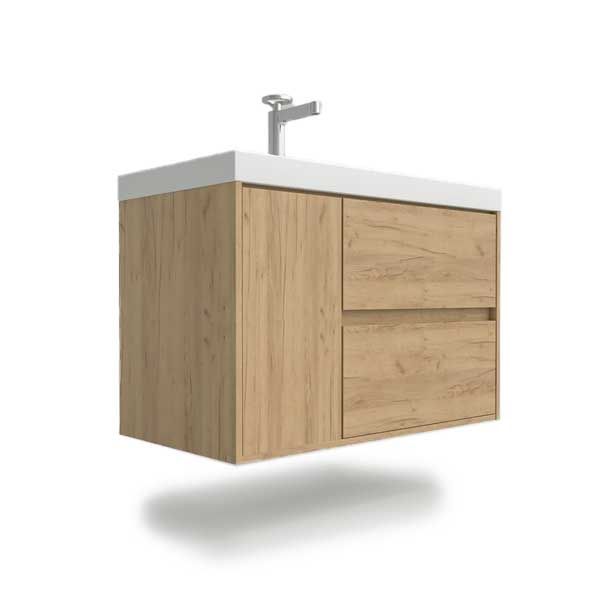 Mueble suspendido 2 puertas CARMEN con lavabo resina acabado ROBLE CLARO