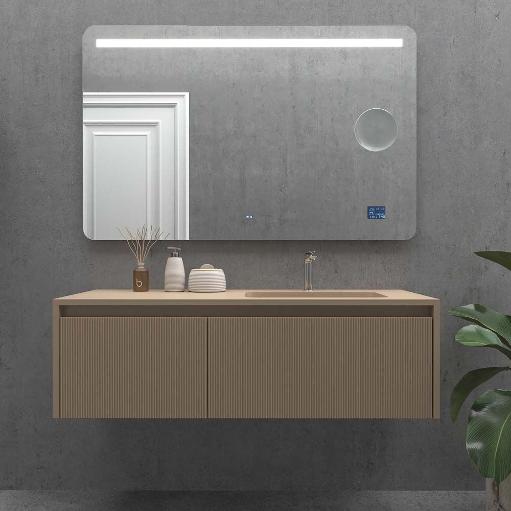 - Instalado frente al espejo en el borde inferior.