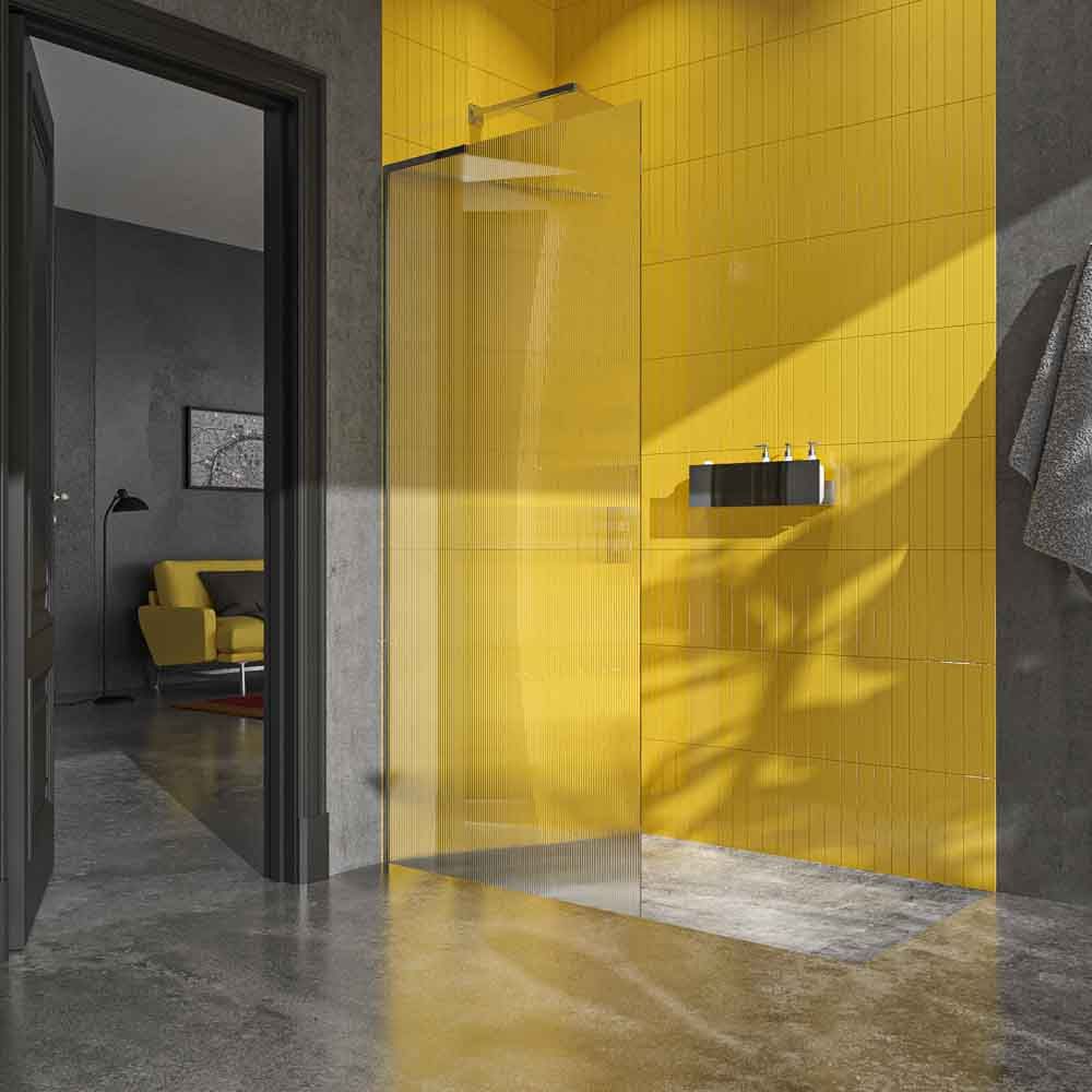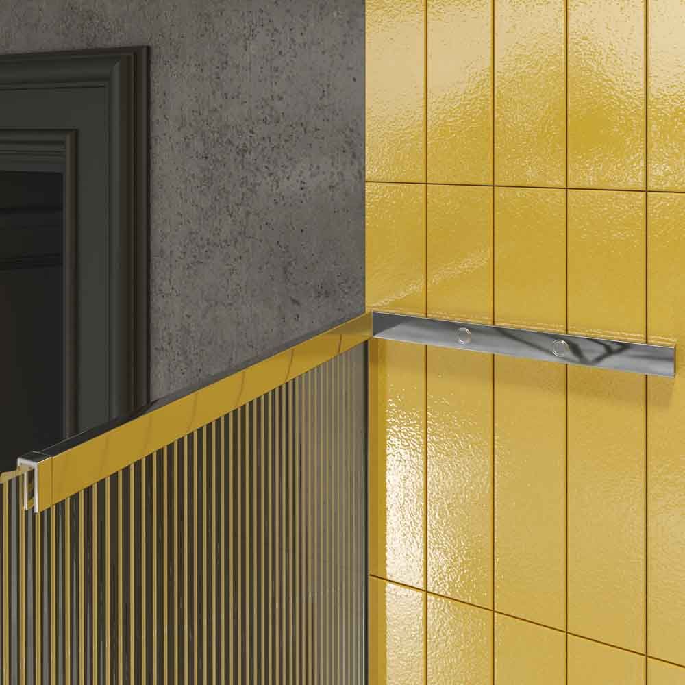 La mampara fijo de ducha ZEN lleva vidrio ACANALADO templado de 8 mm de espesor, un pequeño perfil a pared de acero inox y una minimalista escuadra de sujección a pared en acabado en acero inox para dar mayor estabilidad a la mampara de ducha.Los fijos de ducha son soluciones bellísimas y funcionales que necesitan crecer en amplitud visual.