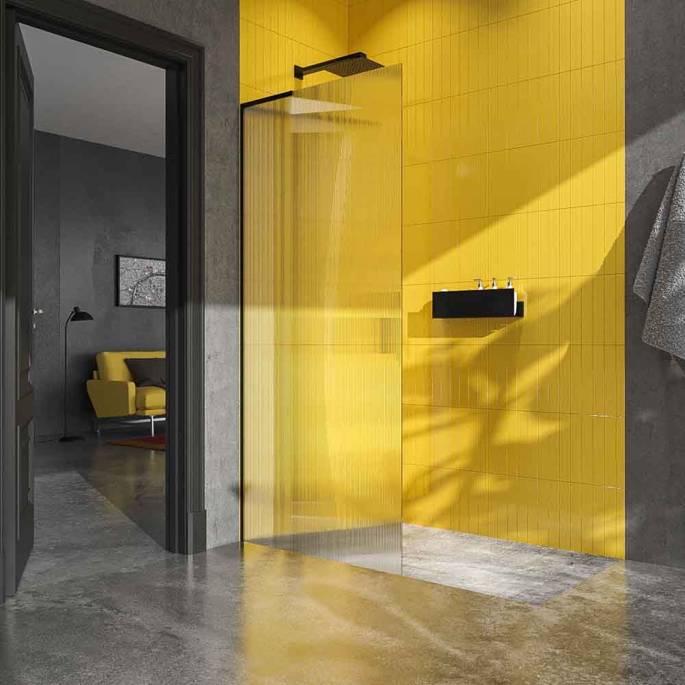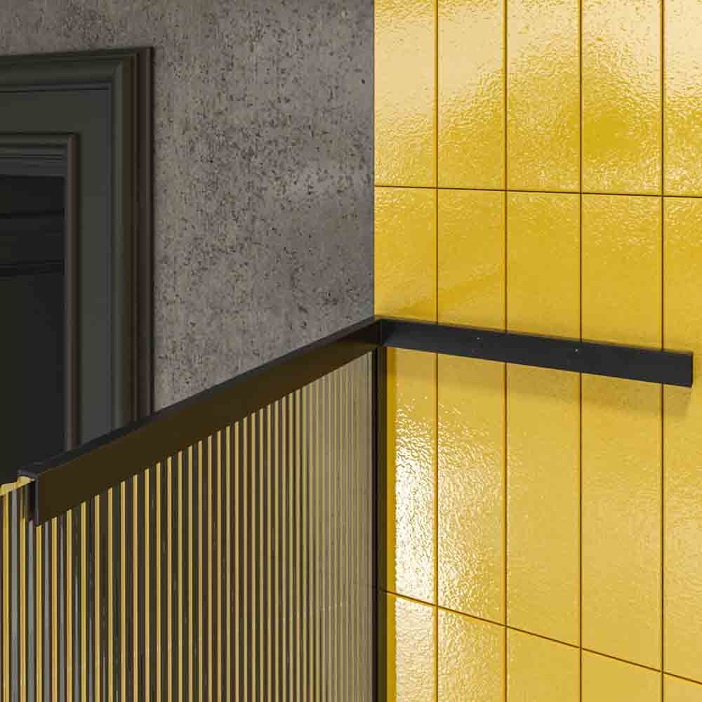 La mampara fijo de ducha ZEN lleva vidrio ACANALADO templado de 8 mm de espesor, un pequeño perfil a pared de acero inox negro mate y una minimalista escuadra de sujección a pared en acabado en negro mate para dar mayor estabilidad a la mampara de ducha.Los fijos de ducha son soluciones bellísimas y funcionales que necesitan crecer en amplitud visual.