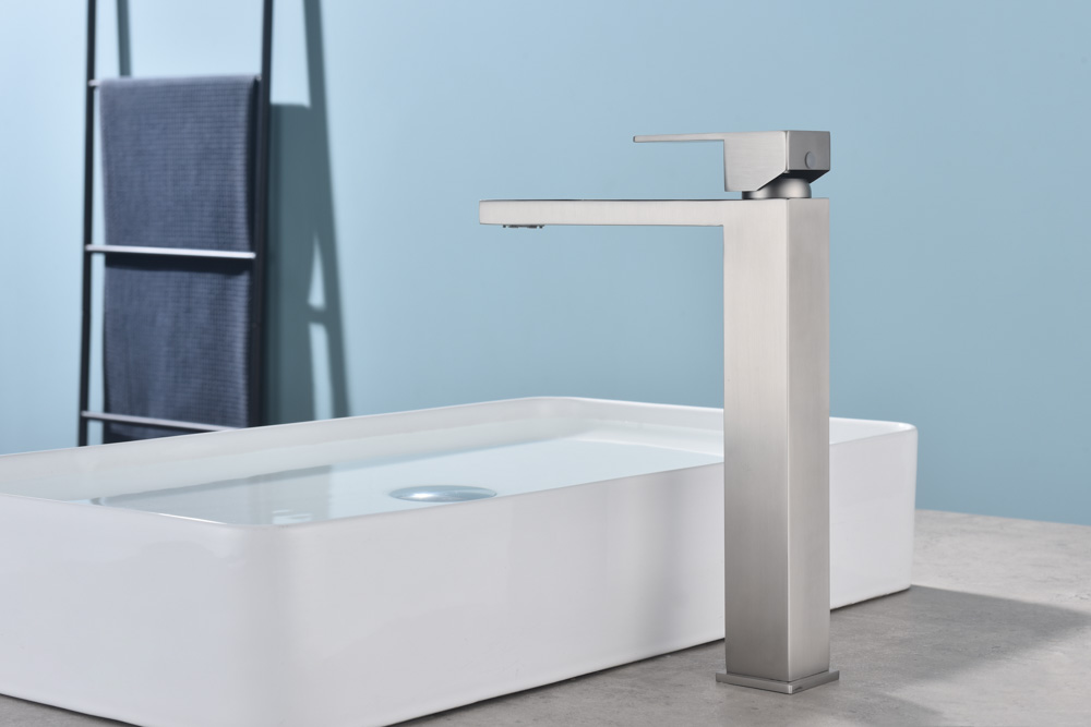 Grifo monomando de lavabo Alto acabado Níquel Cepillado serie ARMY.