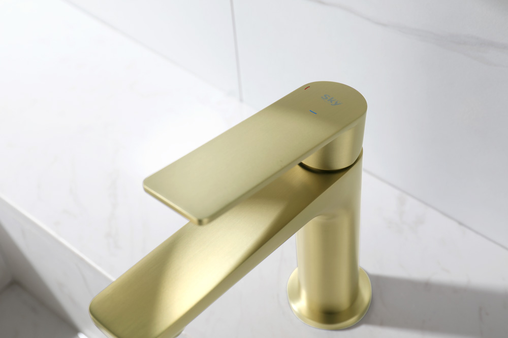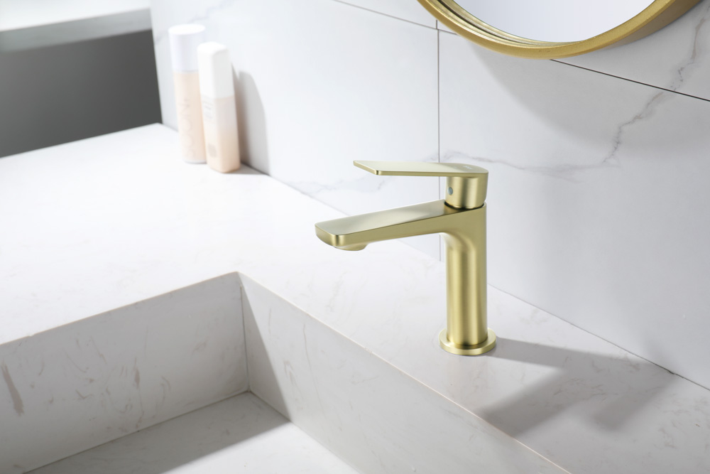 Grifo Monomando de Lavabo GLORY acabado Oro Cepillado.
