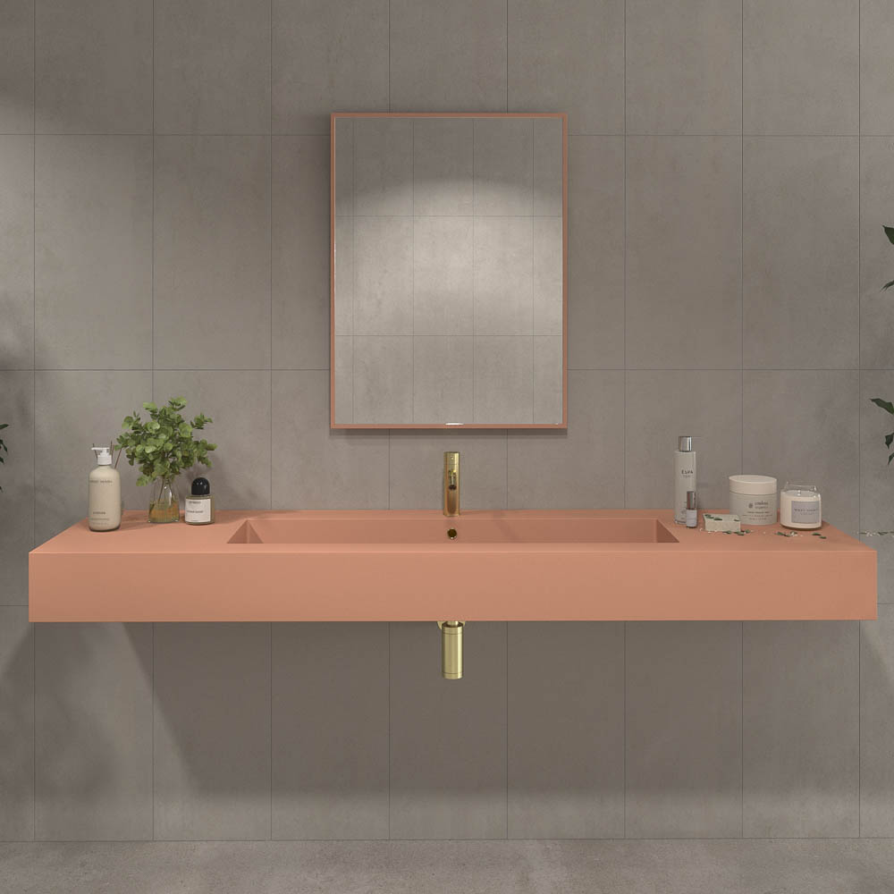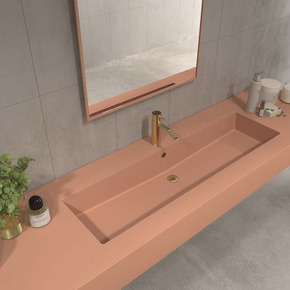 Lavabo suspendido a medida FIONA un seno centrado SOLID SURFACE Rojo beige RAL 3015