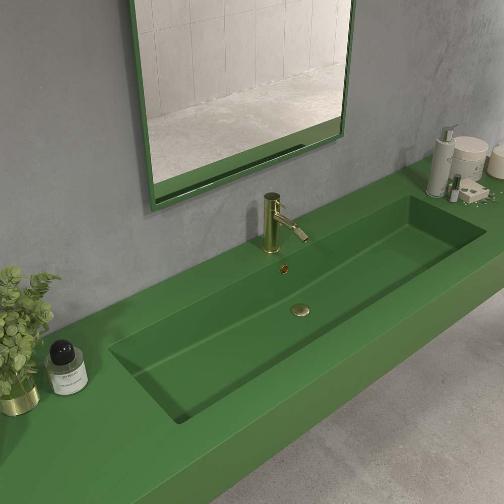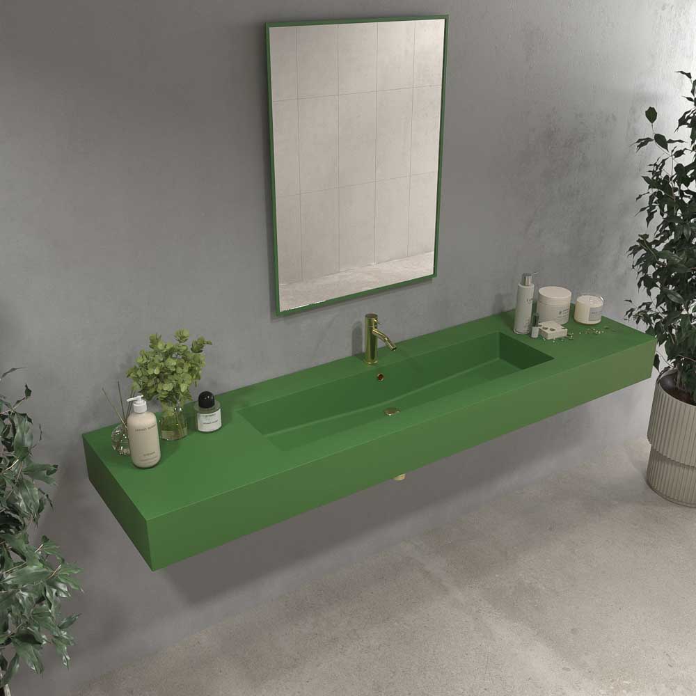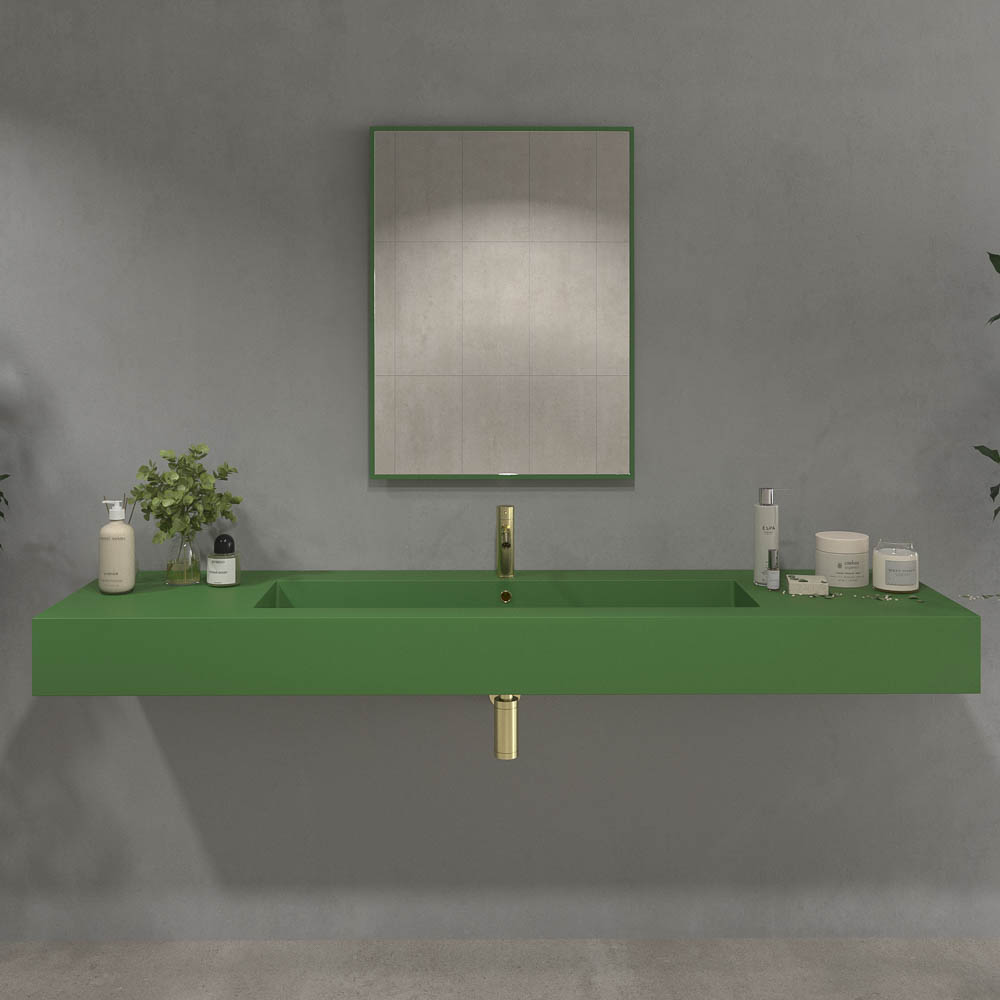 Lavabo suspendido a medida FIONA un seno centrado SOLID SURFACE Verde esmeralda RAL 6001