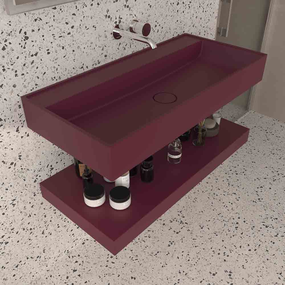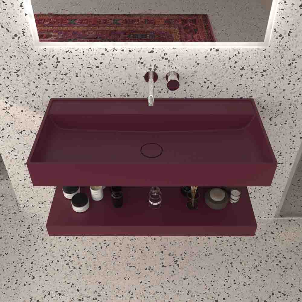 Lavabo suspendido TOTEM un seno centrado SOLID SURFACE Burdeos