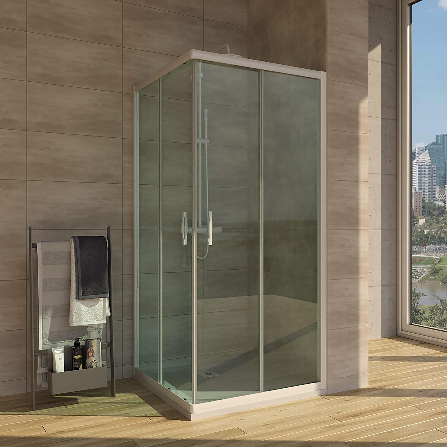 Su vidrio templado tiene 6 mm de grosor y acabado transparente y la perfilería es de aluminio blanco mate, así como los accesorios. Al componerse de dos fijos, y dos puertas correderas, los rodamientos dobles de la mampara Tempo se desgastarán menos y el conjunto durará más como nuevo.