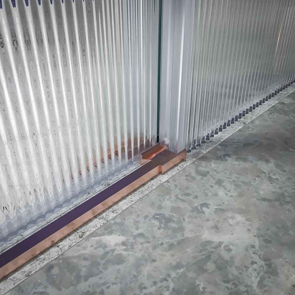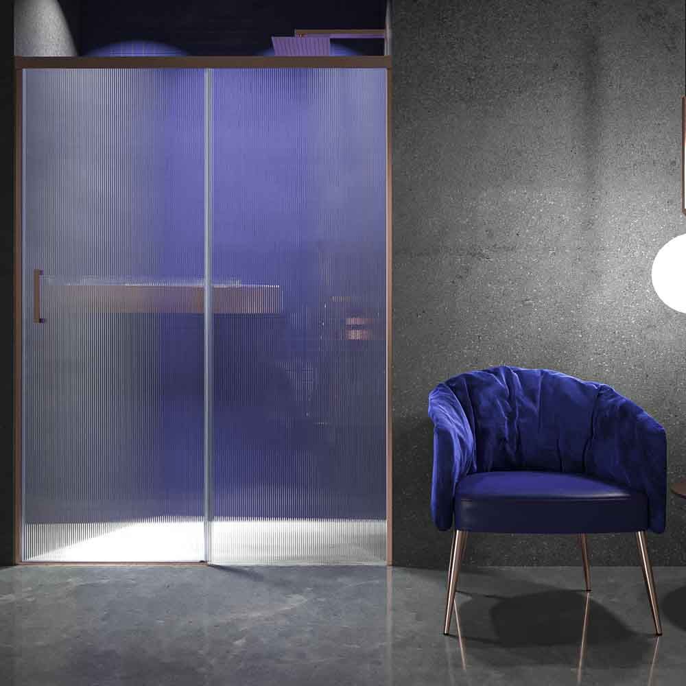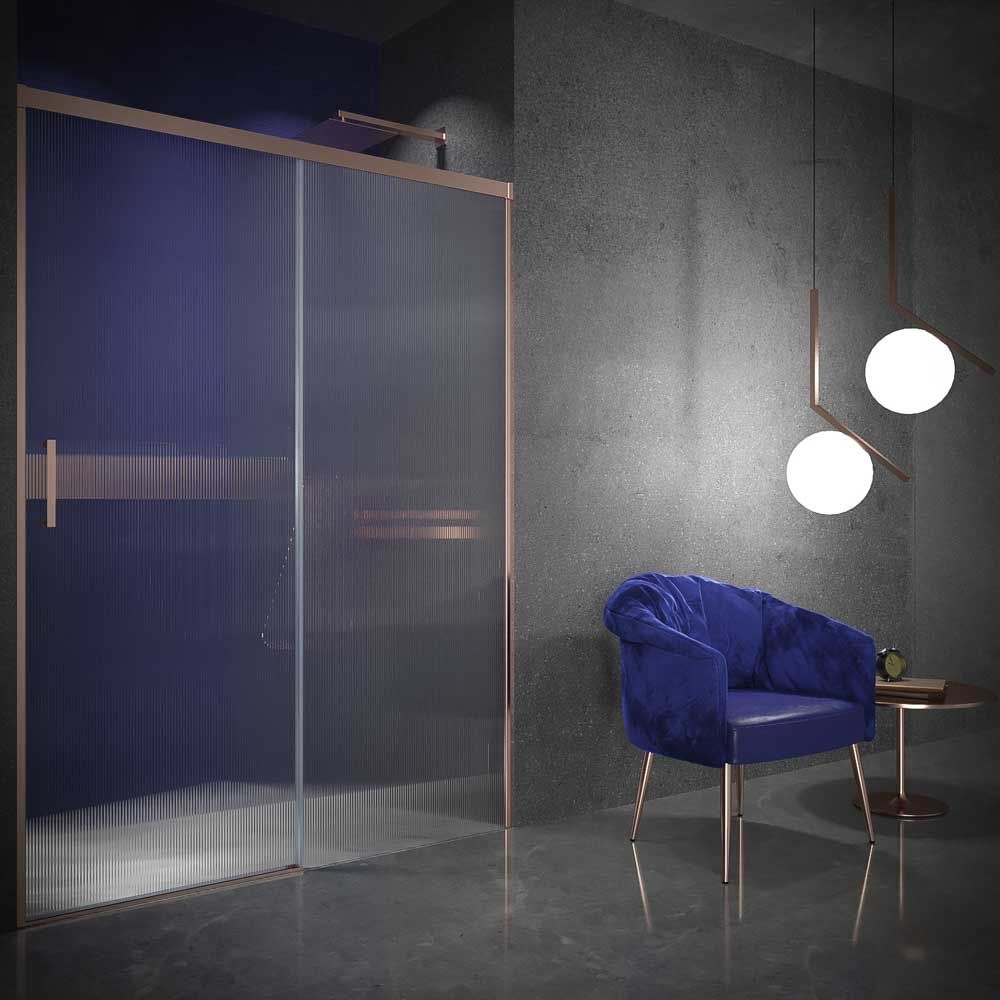 El efecto visual del vidrio acanalado le da un toque retro y chic a nuestros espacios de ducha.