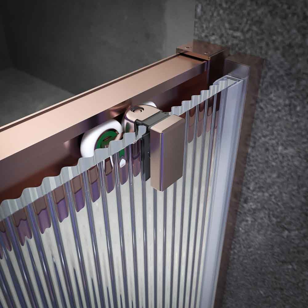 Mampara de ducha frontal BASIC 1 fijo -1 puerta corredera VIDRIO ACANALADO. Sin perfil inferior. Acabado ORO ROSA