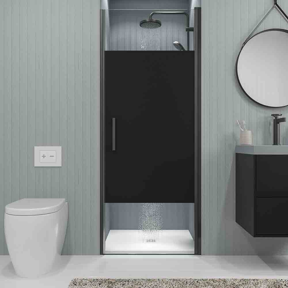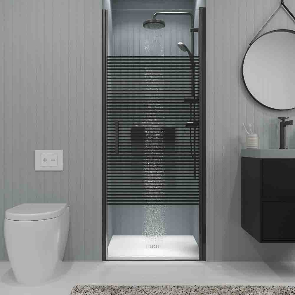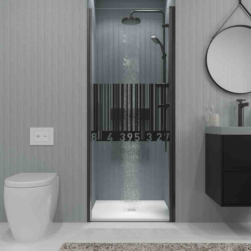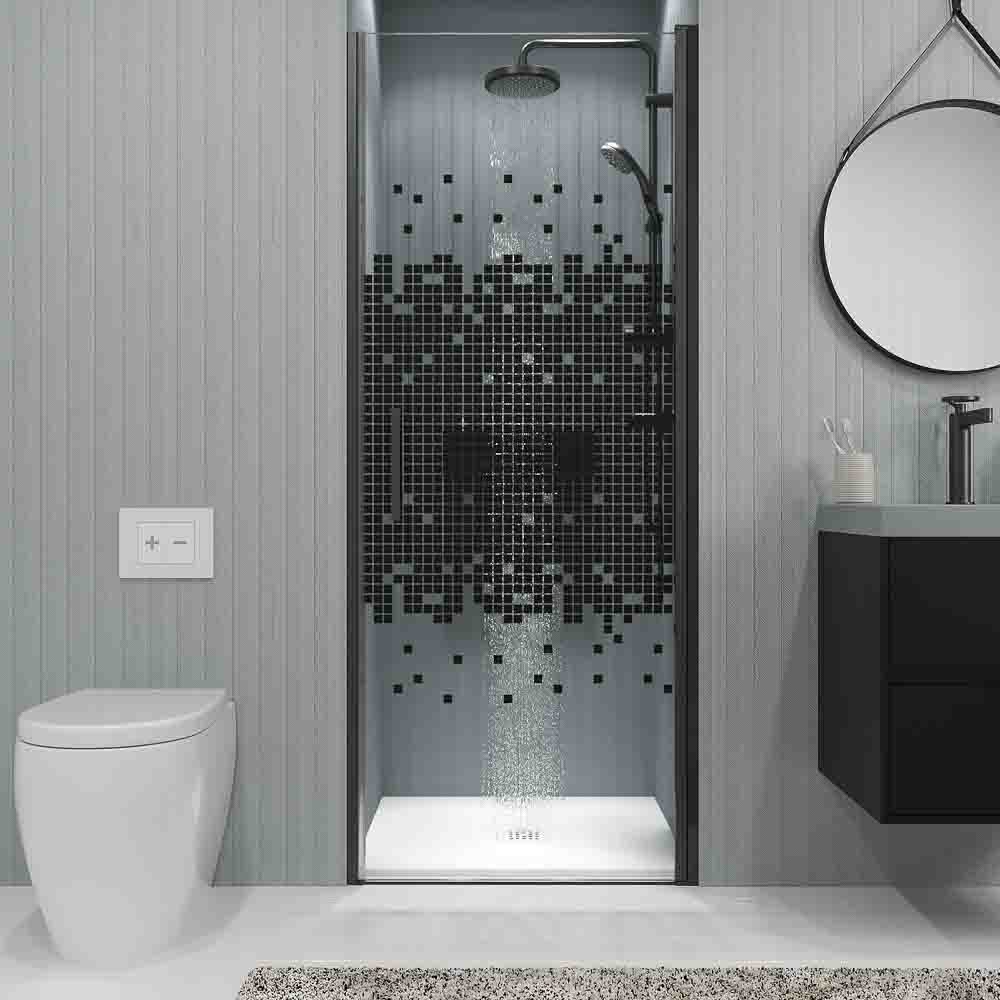 Mampara de ducha frontal OPEN 1 puerta SERIGRAFIADA abatible a medida acabado NEGRO MATE