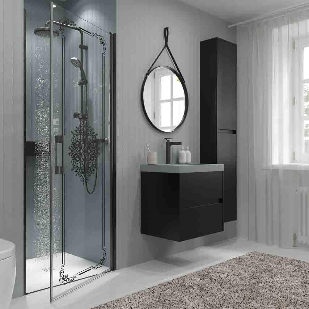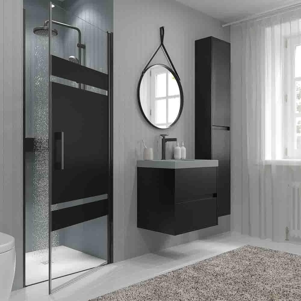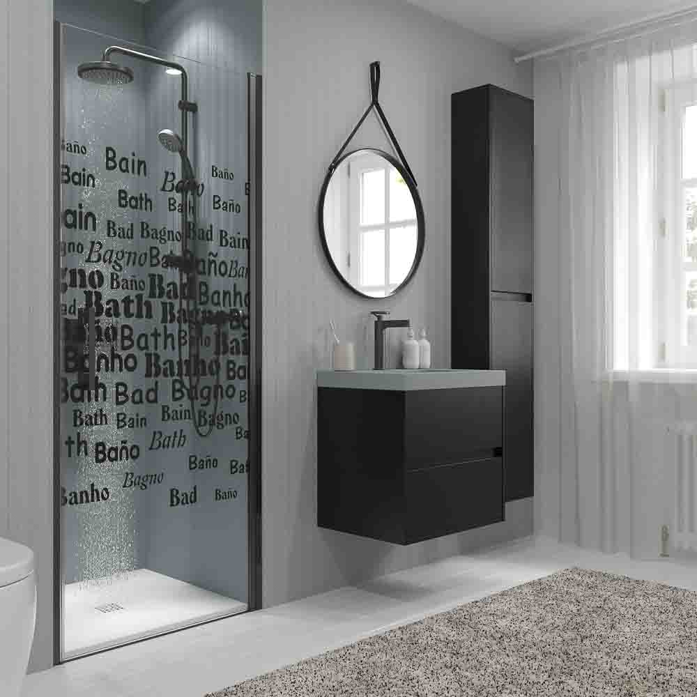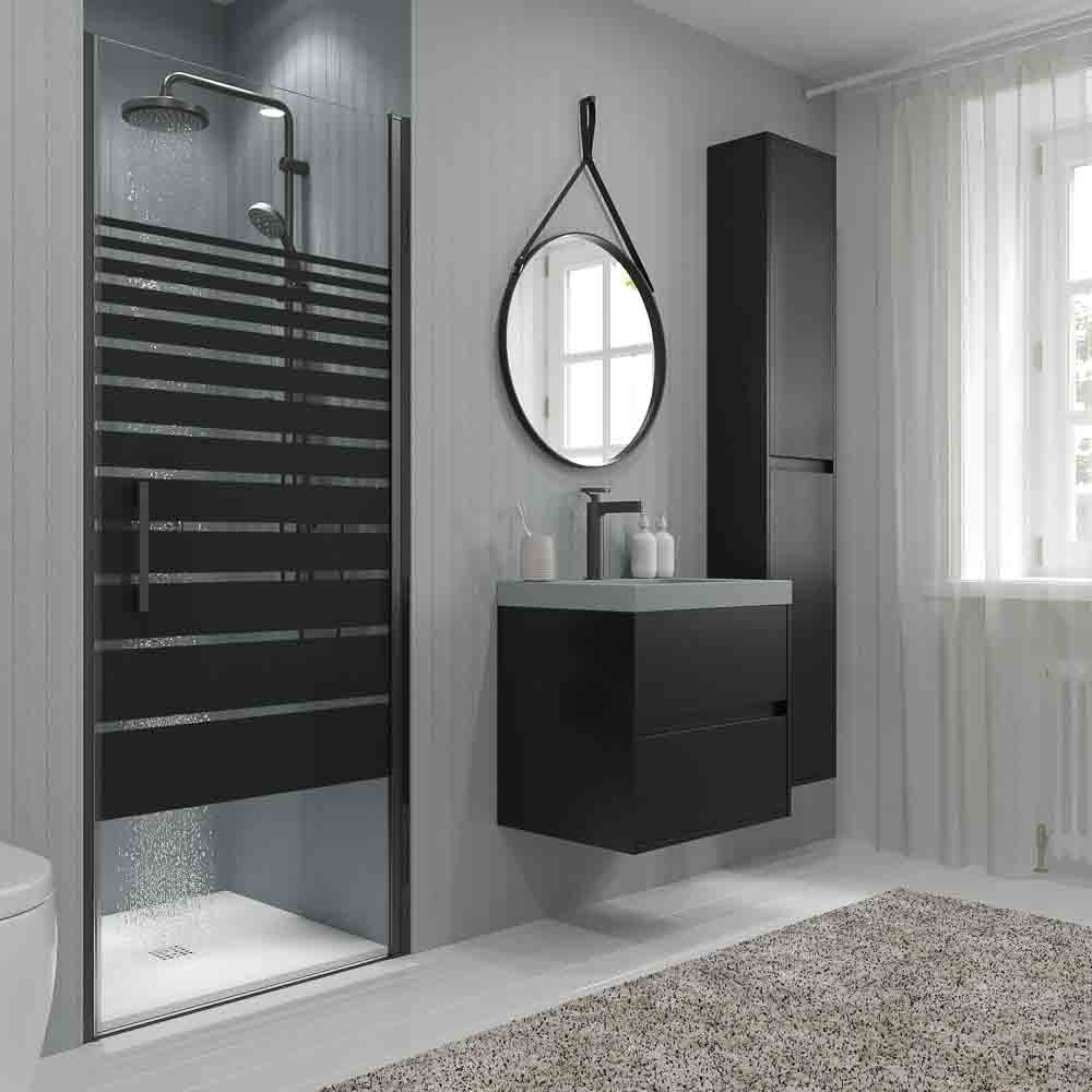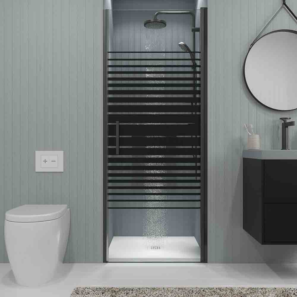 Mampara de ducha frontal OPEN 1 puerta SERIGRAFIADA abatible a medida acabado NEGRO MATE