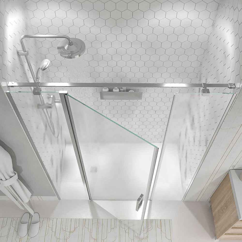 - Frontal de ducha compuesto por una puerta abatible con un pequeño fijo frontal. Reversible (indícanos la posición de anclaje).