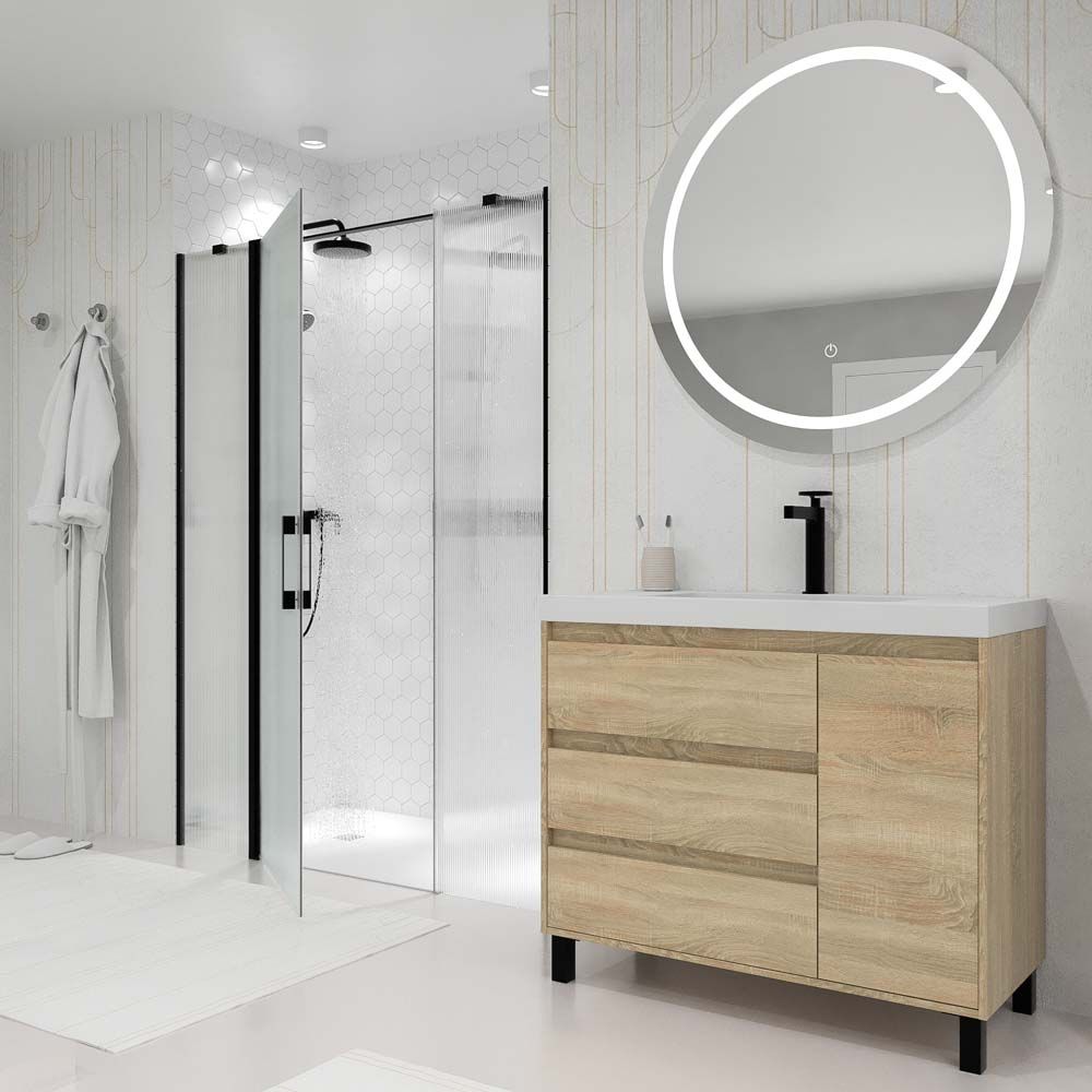 - Frontal de ducha compuesto por una puerta abatible con un pequeño fijo frontal. Reversible (indícanos la posición de anclaje).