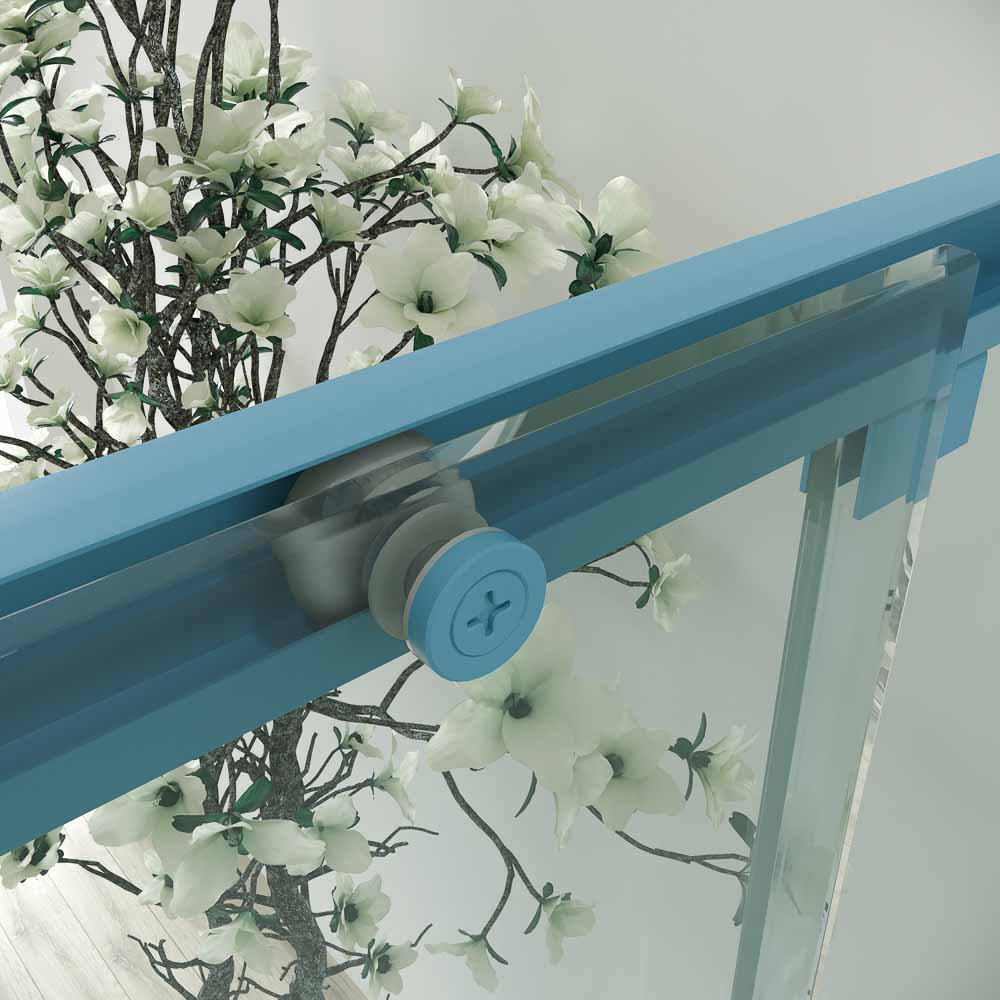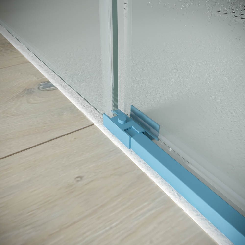 - Carece de perfil inferior, lo que aporta comodidad y seguridad en el acceso, además de resultar más higiénica, puesto que no se acumularán restos de cal en el raíl.