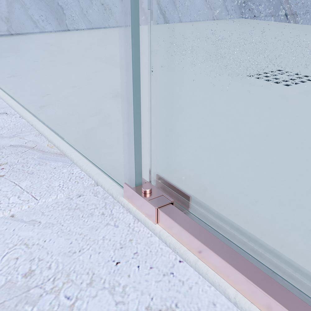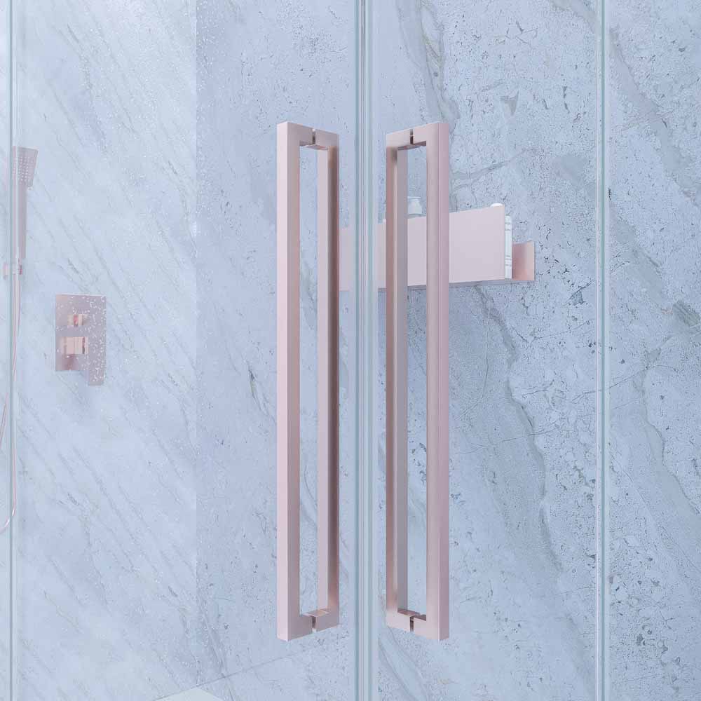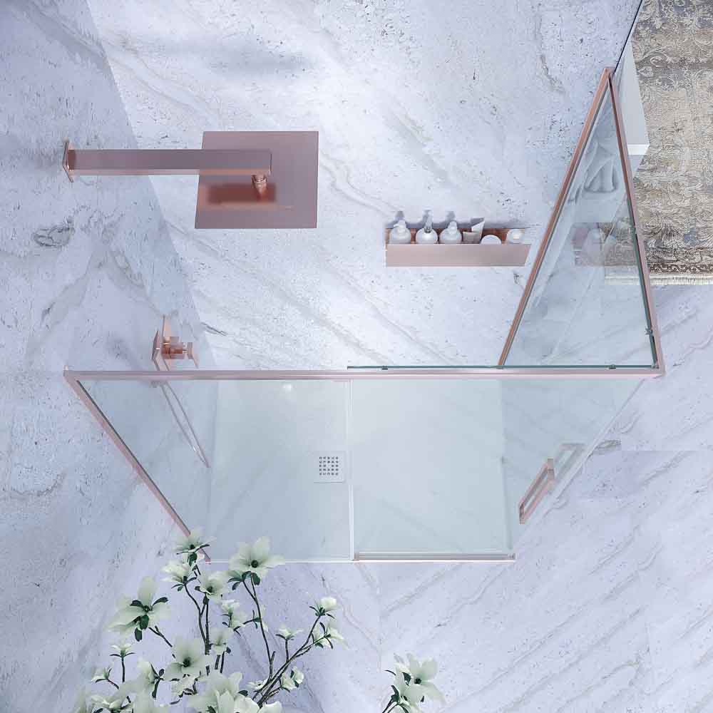 Mampara de ducha PETRA rectangular 2 fijos – 2 puertas correderas vidrio 6 mm. ACERO INOXIDABLE acabado ORO ROSA