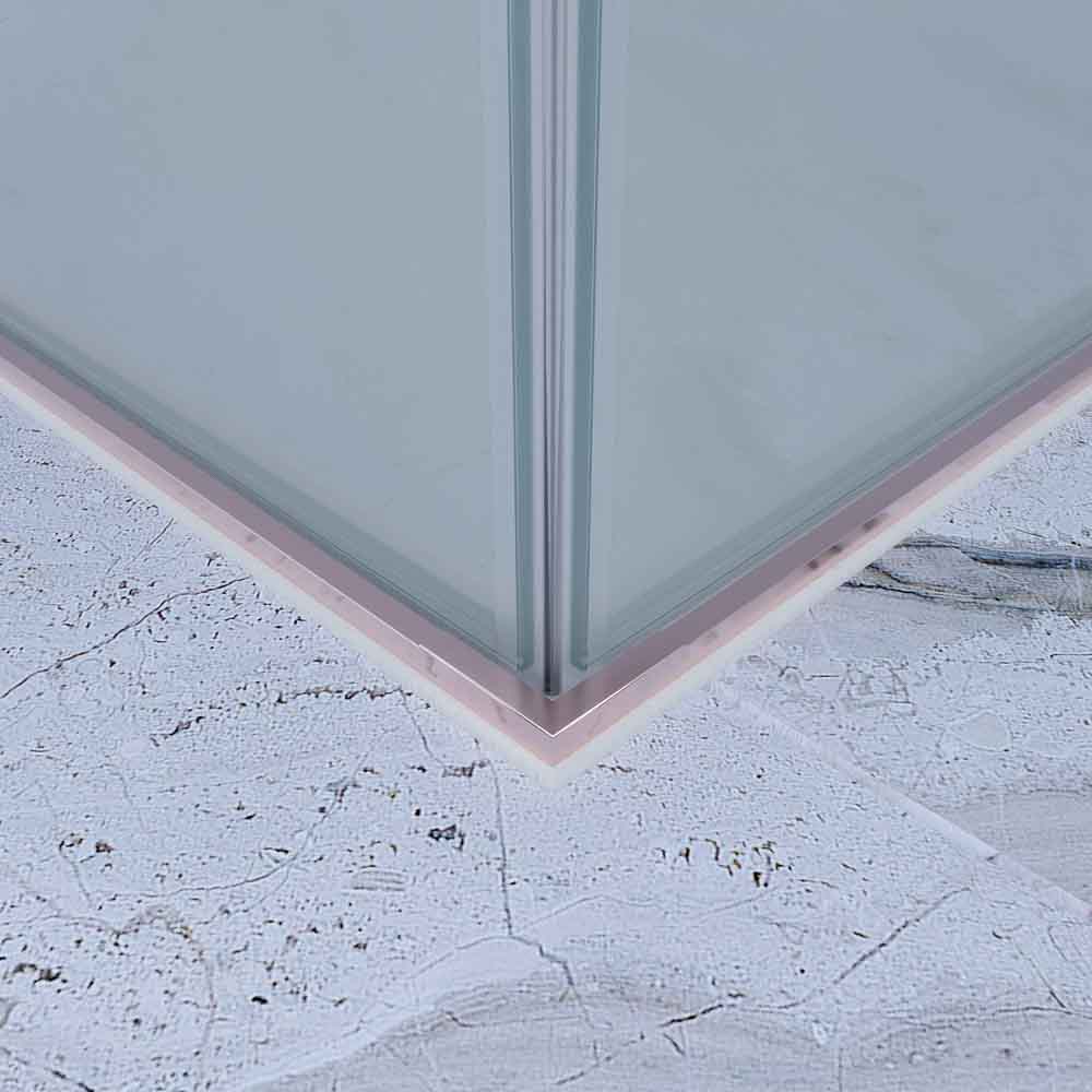 • La perfilería de la mampara de ducha angular PETRA es de acero inoxidable acabados mates . Un material de alta resistencia al desgaste y la humedad.