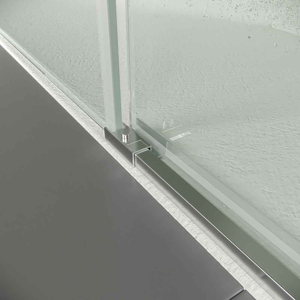 - Carece de perfil inferior, lo que aporta comodidad y seguridad en el acceso, además de resultar más higiénica, puesto que no se acumularán restos de cal en el raíl.