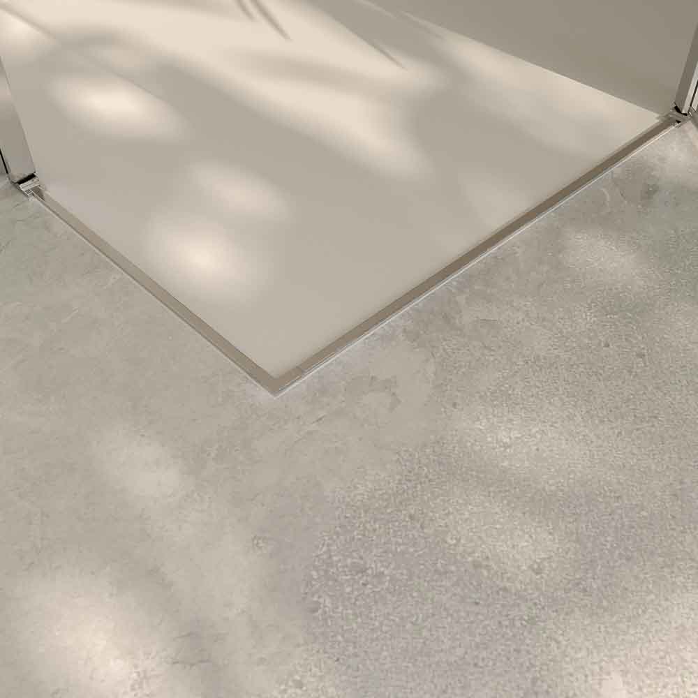 - Mampara sin perfil inferior pero con junta de goma inferior en inglete y perfil base de aluminio para mayor estanqueidad.