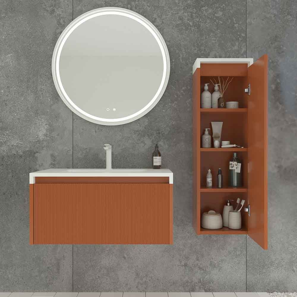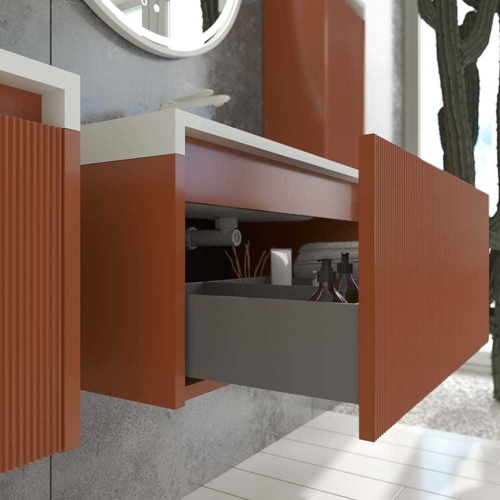 Los muebles de baño suspendido con cajón con separadores son ideales para almacenar todos los enseres de baño en orden. Las medida del mueble son de 60 cm / 80 cm de ancho x 45 cm de fondo x 40 cm de alto.Esta fabricado enn MDF, un material muy resistente y duradero para que el mueble tenga una larga vida. La pintura que se proyecta en el módulo esa base de iones de plata antibacteriana que lo hace mas resistente. El frente alistonado lo hace un mueble de baño de diseño único en el mercado nacional e internacional.Está compuesto por 1 cajón fabricado con guías metálicas de extracción total con cierre amortiguado. La apertura y cierre de los cajones se realiza con sistema de uñero .Para completar el mueble de baño de diseño, el lavabo de SOLID SURFACE se puede acabar en la mismo color del mueble y puedes añadir espejos enmarcados en aluminio exactamente igual al color del mueble. Combina con todos los tipos de espejos de nuestro catalogo.El mueble lo podrás escoger en varios acabados diferentes. Una amplia gama en colores para que no tengas problemas de compatibilidad con el resto de accesorios de baño.Para que no pierdas tiempo en montarlo, el mueble te llegará a casa completamente ensamblado. Solamente tendrás que recibirlo e instalarlo a pared de manera sencilla.Un mueble con diseño internacional para tu cuarto de baño.