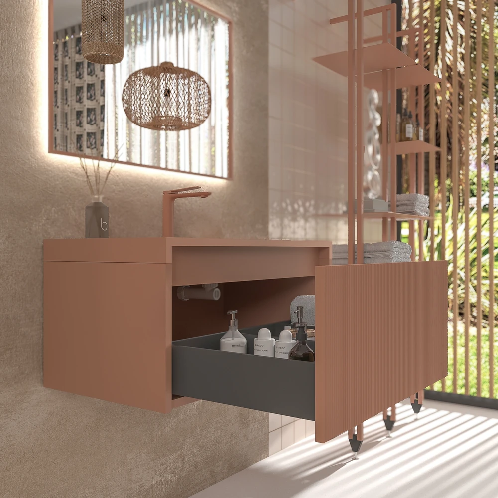 Mueble de baño BINARIO suspendido 1 cajón acabado ROJO BEIGE
