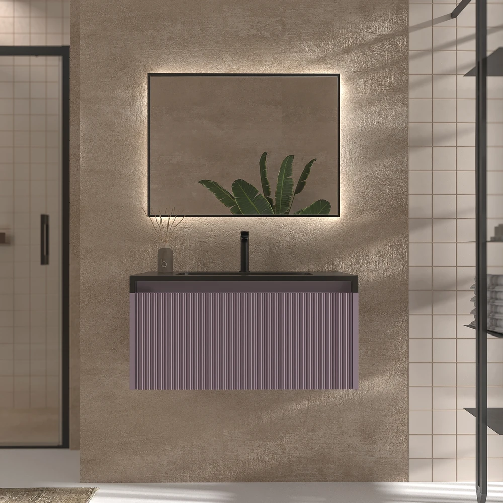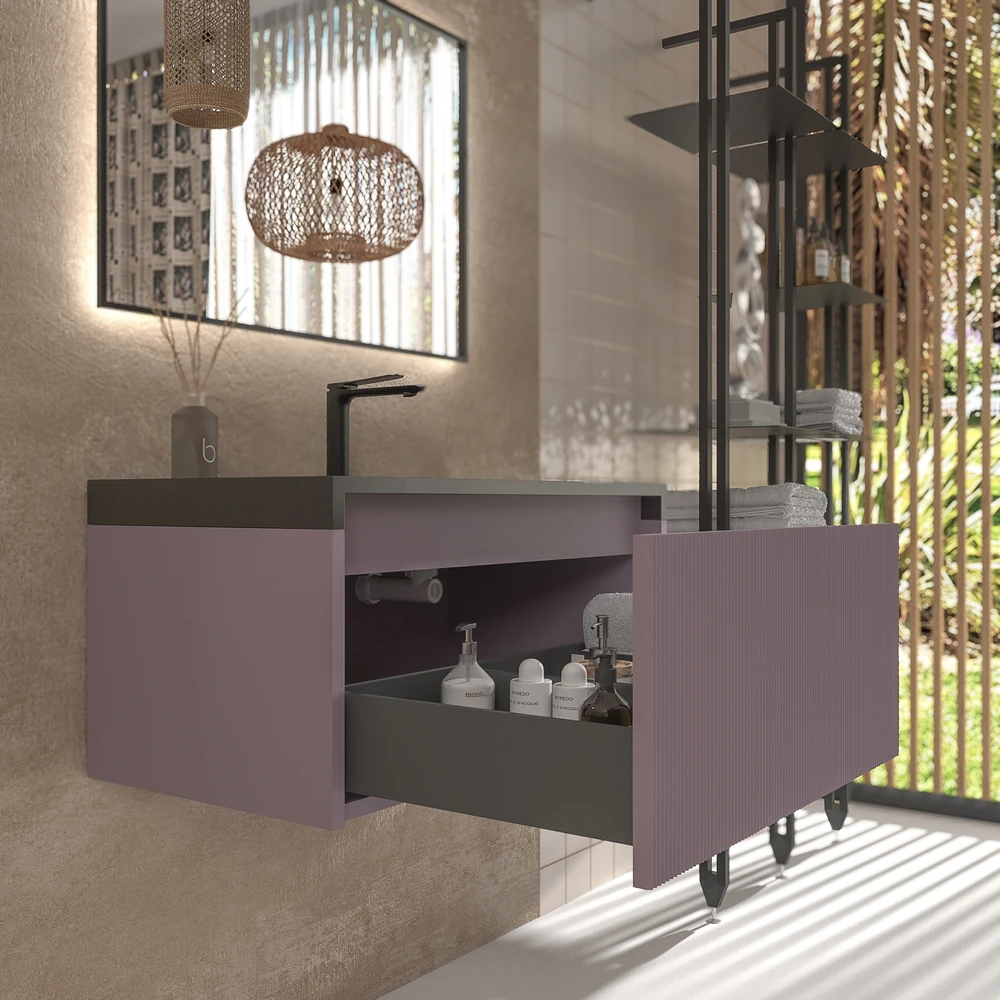 Mueble de baño BINARIO suspendido 1 cajón acabado VIOLETA PASTEL