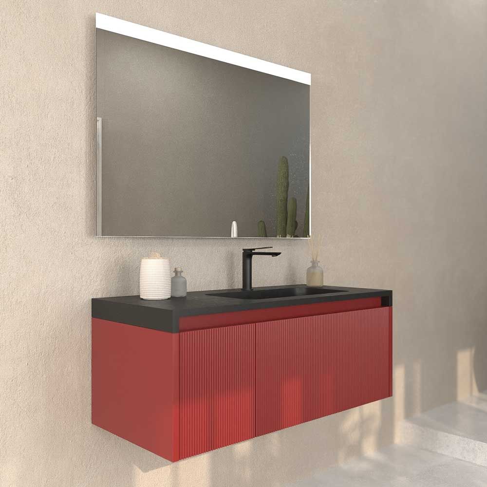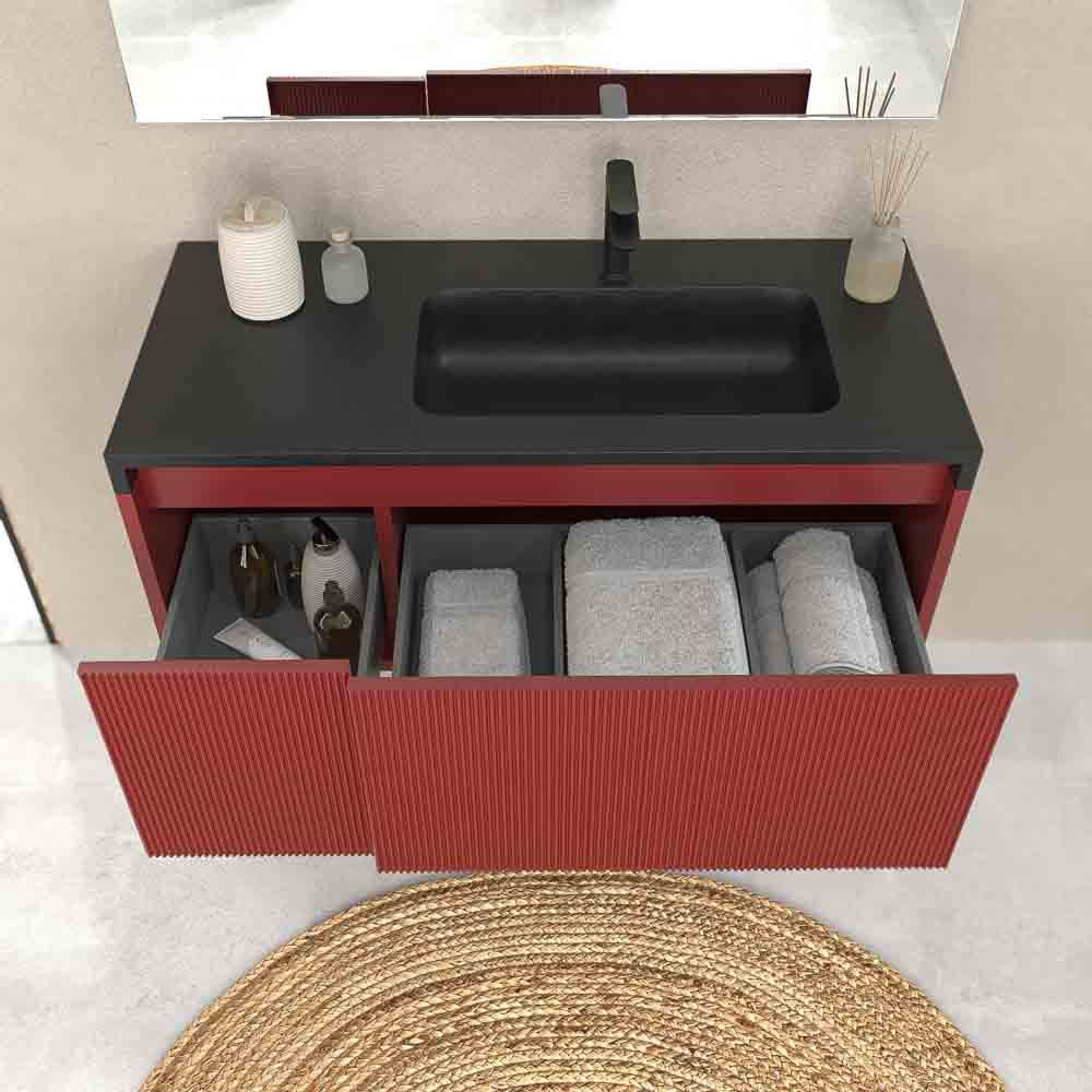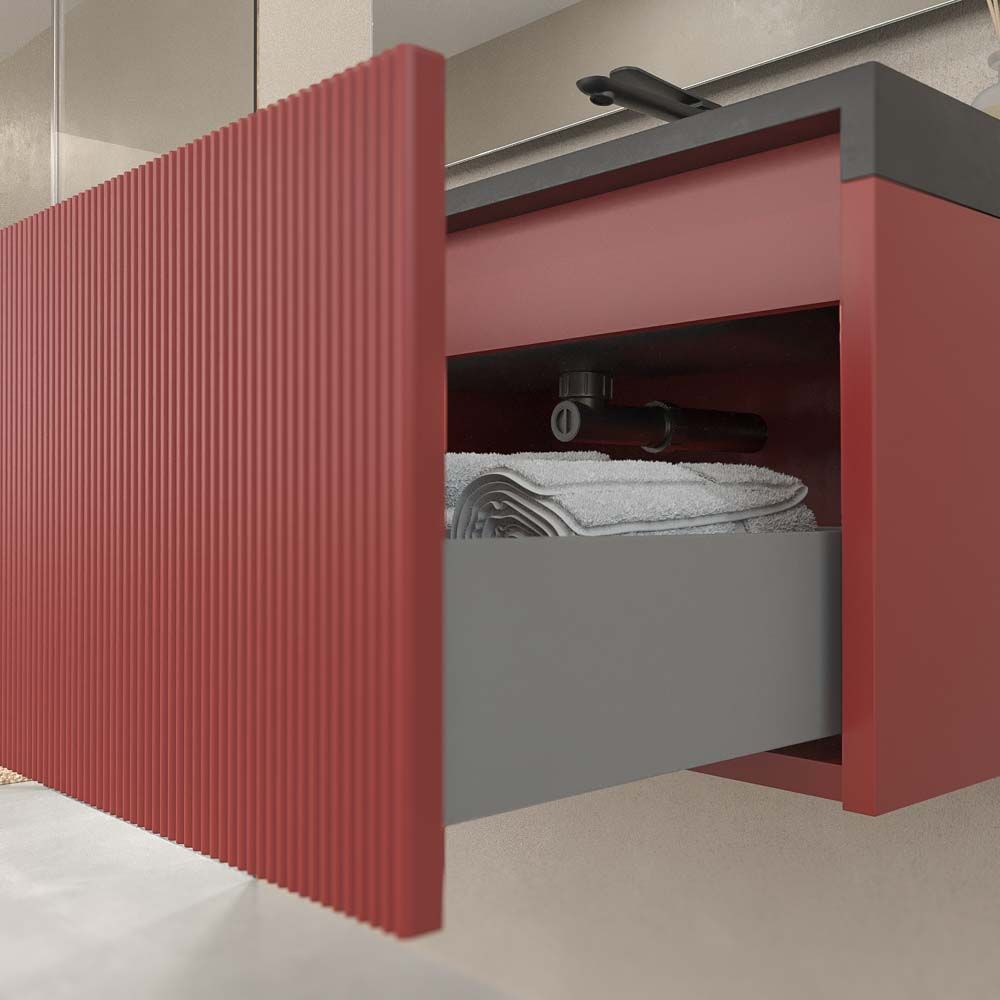 Los muebles de baño suspendido con cajones con separadores son ideales para almacenar todos los enseres de baño en orden. Las medida del mueble son de 90 cm / 110 cm de ancho x 45 cm de fondo x 40 cm de alto.Esta fabricado enn MDF, un material muy resistente y duradero para que el mueble tenga una larga vida. La pintura que se proyecta en el módulo esa base de iones de plata antibacteriana que lo hace mas resistente. El frente alistonado lo hace un mueble de baño de diseño único en el mercado nacional e internacional.Está compuesto por 2 cajones fabricado con guías metálicas de extracción total con cierre amortiguado. La apertura y cierre de los cajones se realiza con sistema de uñero .Para completar el mueble de baño de diseño, el lavabo de SOLID SURFACE se puede acabar en la mismo color del mueble y puedes añadir espejos enmarcados en aluminio exactamente igual al color del mueble. Combina con todos los tipos de espejos de nuestro catalogo.El mueble lo podrás escoger en varios acabados diferentes. Una amplia gama en colores para que no tengas problemas de compatibilidad con el resto de accesorios de baño.Para que no pierdas tiempo en montarlo, el mueble te llegará a casa completamente ensamblado. Solamente tendrás que recibirlo e instalarlo a pared de manera sencilla.Un mueble con diseño internacional para tu cuarto de baño.