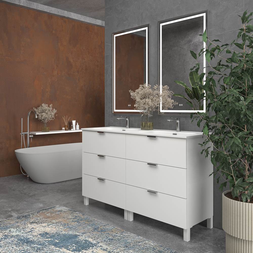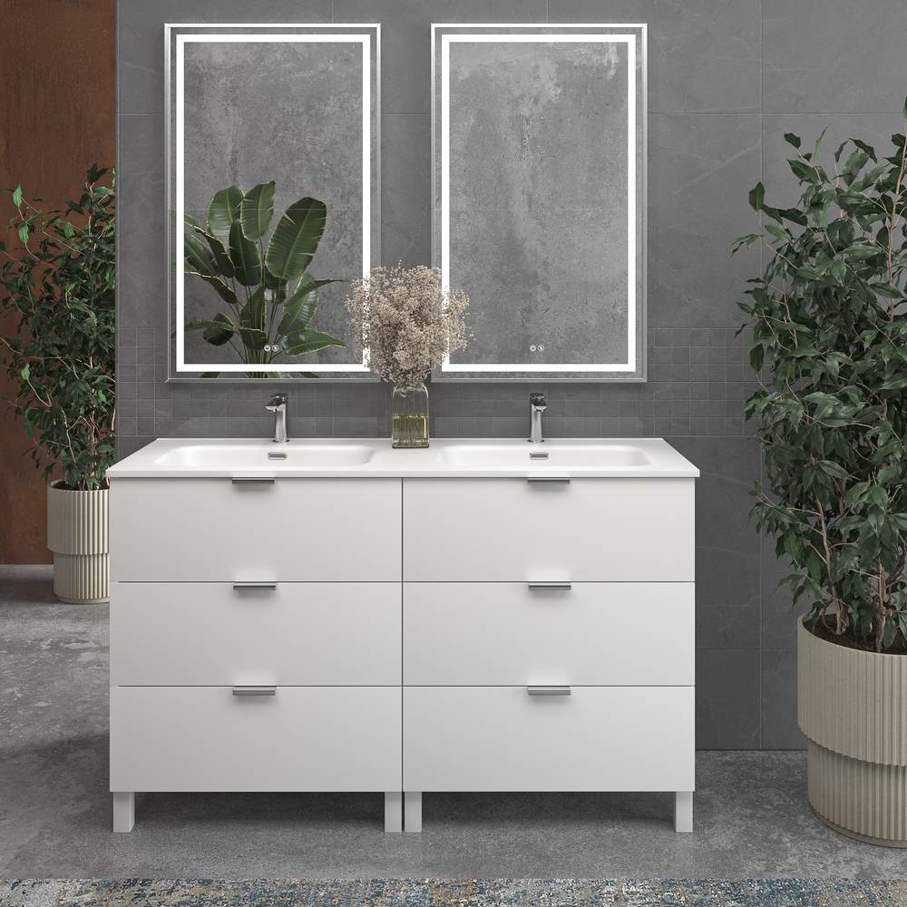 Mueble de baño con patas 6 cajones LUXOR BLANCO con encimera porcelana BLANCO