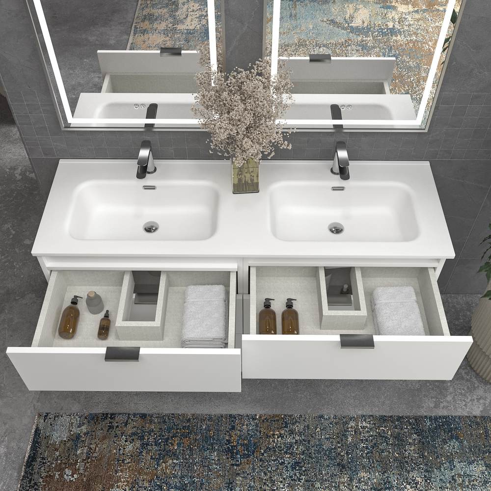 Medidas del lavabo: 1,5 cm mayor que el mueble (si el mueble mide 120×45 cm, el lavabo medirá 121,5×46,5 cm)