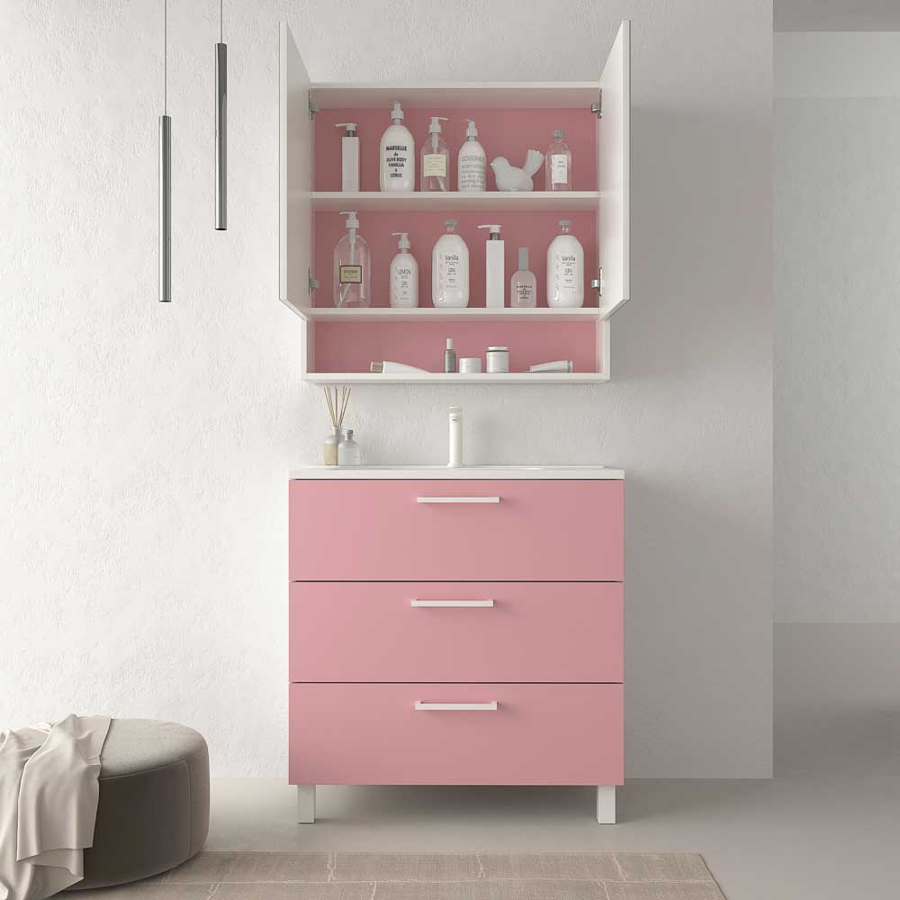 Estamos ante un mueble de baño con patas que con 60, 70, 80 o 100 cm de ancho, 60 de alto y 40 de fondo se adapta perfectamente a tu cuarto de aseo.