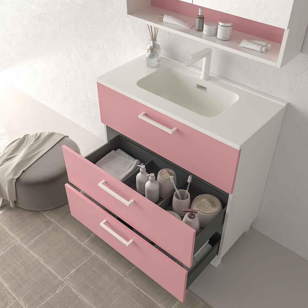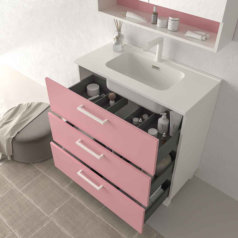 Además, en el cajón inferior, más alto, guardarás los botes más grandes sin ningún problema. Se acabó el desorden en el baño.