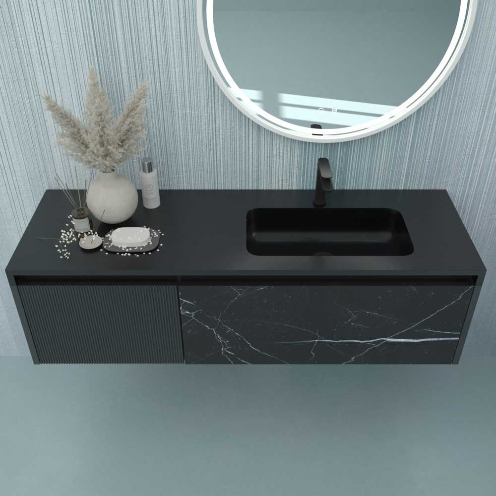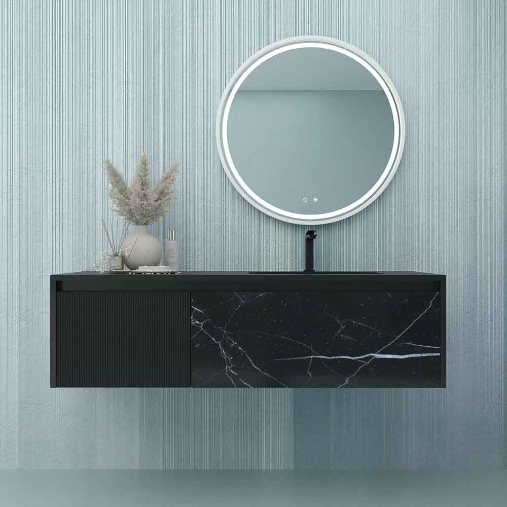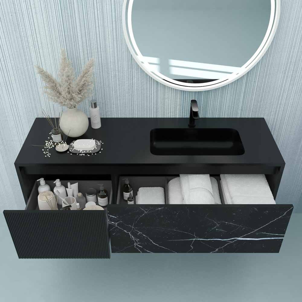 Los muebles de baño suspendido con 2 cajones con separadores son ideales para almacenar todos los enseres de baño en orden. Las medida del mueble son de 100 cm a 120 cm de ancho x 45 cm de fondo x 40 cm de alto.Esta fabricado con frontal impreso 3D imitación marmól combinado con palilleria , el mueble es lacado a mano en acrilico un material muy resistente y duradero para que el mueble tenga una larga vida. La pintura que se proyecta en el módulo esa base de iones de plata antibacteriana que lo hace mas resistente. El frente de palilleria lo hace un mueble de baño de diseño único en el mercado nacional e internacional.Está compuesto por 2 cajones fabricado con guías metálicas de extracción total con cierre amortiguado. La apertura y cierre de los cajones se realiza con sistema de uñero .Para completar el mueble de baño de diseño, el lavabo de SOLID SURFACE se puede acabar en el color que elijas y puedes añadir espejos enmarcados en aluminio exactamente igual al color del mueble. Combina con todos los tipos de espejos de nuestro catalogo.El mueble lo podrás escoger en varios acabados diferentes de colores lacados y tipos de mámol ( consultar en plato de ducha ) .. Una amplia gama en colores para que no tengas problemas de compatibilidad con el resto de accesorios de baño.Para que no pierdas tiempo en montarlo, el mueble te llegará a casa completamente ensamblado. Solamente tendrás que recibirlo e instalarlo a pared de manera sencilla.Un mueble con diseño internacional para tu cuarto de baño.