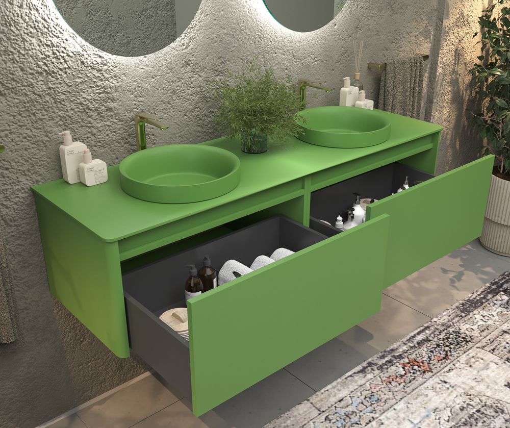 Mueble de baño FUSE suspendido 2 cajones VERDE MAYO