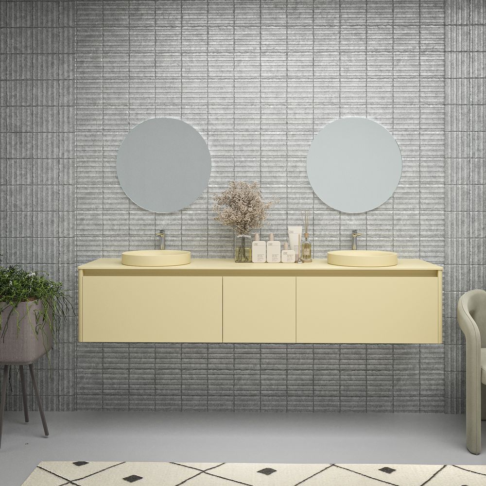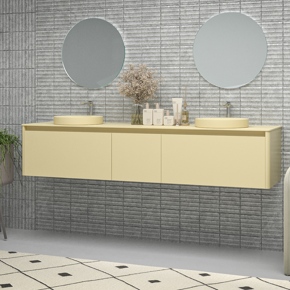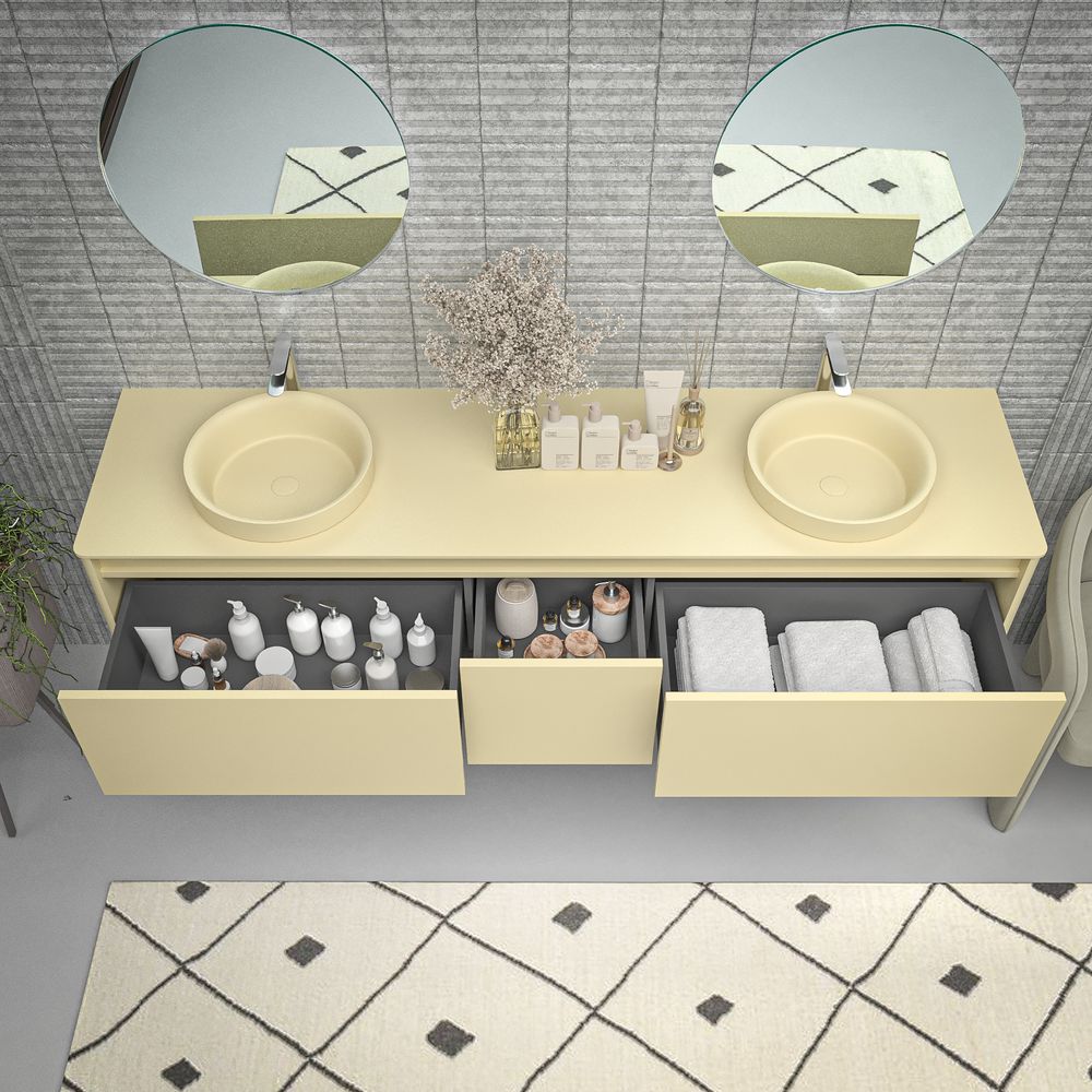 Los muebles de baño suspendido con cajónes son ideales para almacenar todos los enseres de baño en orden. Las medida del mueble son de 160 cm / 180 cm /200 cm de ancho x 45 cm de fondo x 40 cm de alto .Esta fabricado en MDF alta presión , un material muy resistente y duradero para que el mueble tenga una larga vida. .Está compuesto por 2 cajones fabricado con guías metálicas de extracción total con cierre amortiguado. La apertura y cierre de los cajones se realiza con uñero . Para completar el mueble de baño de diseño, el lavabo de SOLID SURFACE se puede acabar en la mismo color del mueble y puedes añadir espejos enmarcados en aluminio exactamente igual al color del mueble. Combina con todos los tipos de espejos de nuestro catalogo. El mueble lo podrás escoger en varios acabados diferentes ( o en cualquier color de la carta RAL ). Una amplia gama en colores para que no tengas problemas de compatibilidad con el resto de accesorios de baño. Para que no pierdas tiempo en montarlo, el mueble te llegará a casa completamente ensamblado. Solamente tendrás que recibirlo e instalarlo a pared de manera sencilla. Un mueble con diseño internacional para tu cuarto de baño.