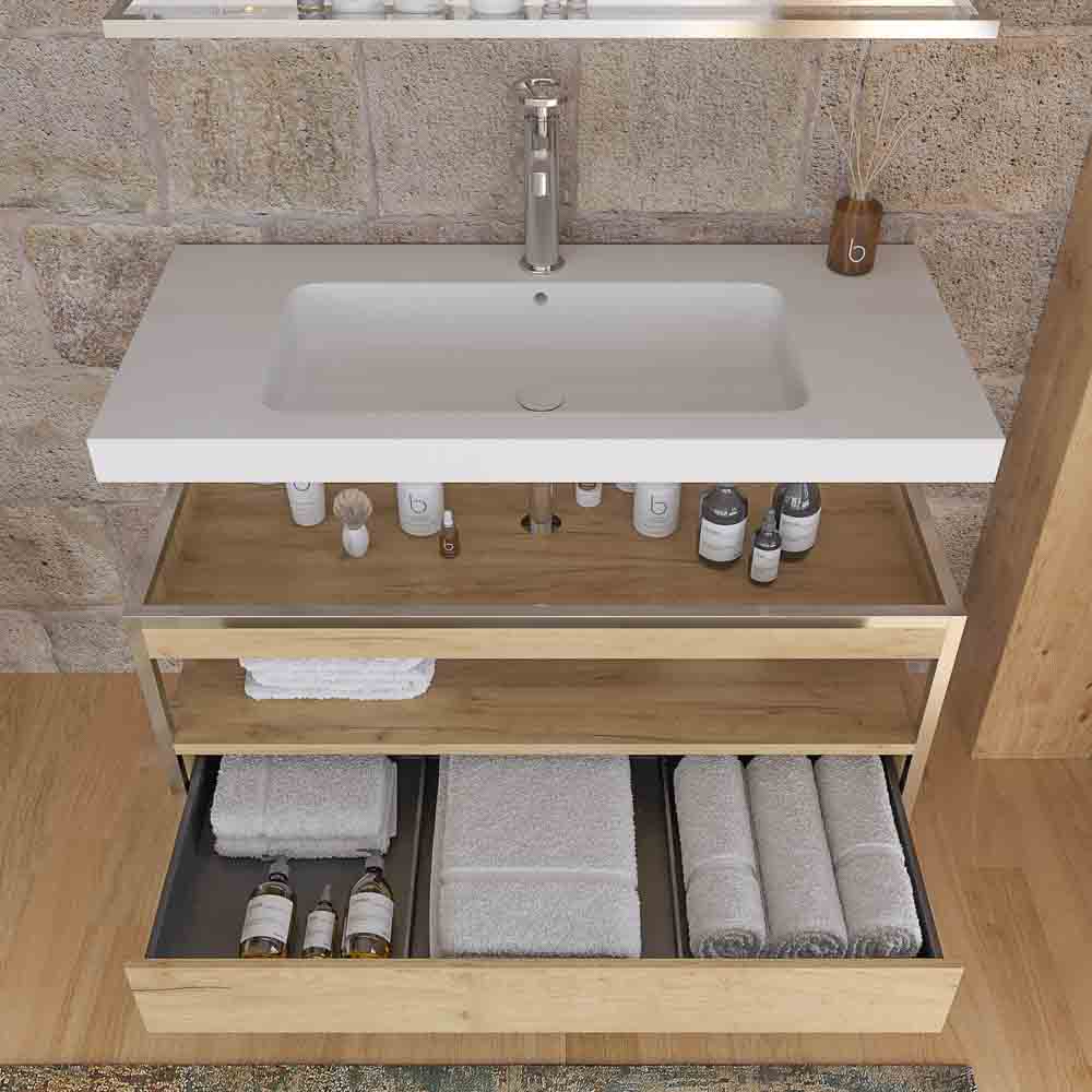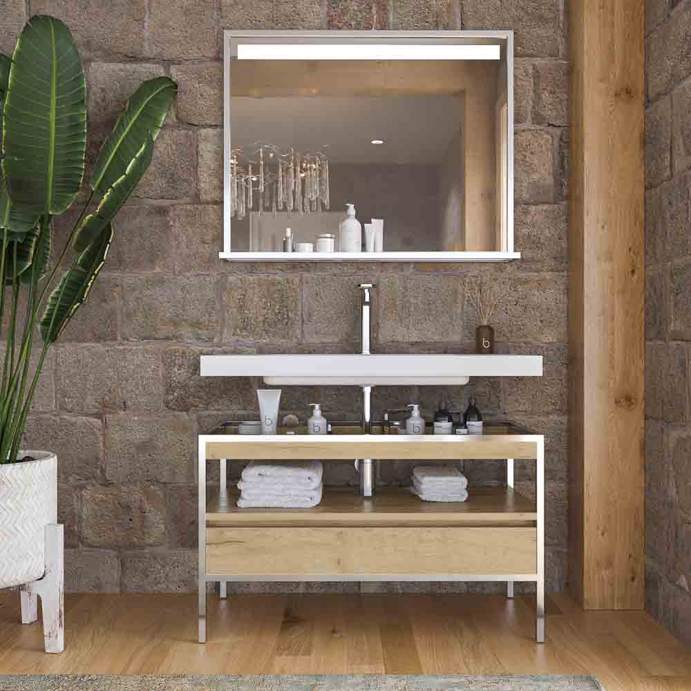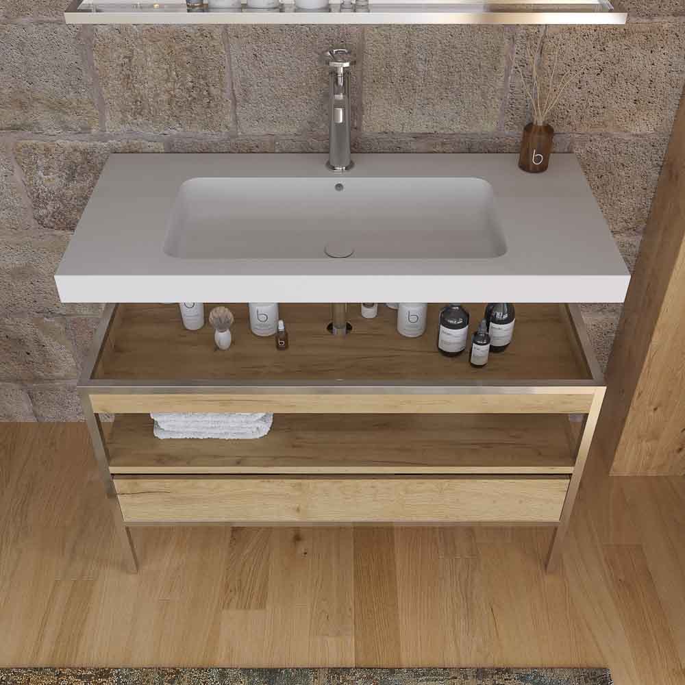 Mueble de baño INDEX estructura con patas 1 cajón lavabo suspendido ROBLE CLARO – CROMO