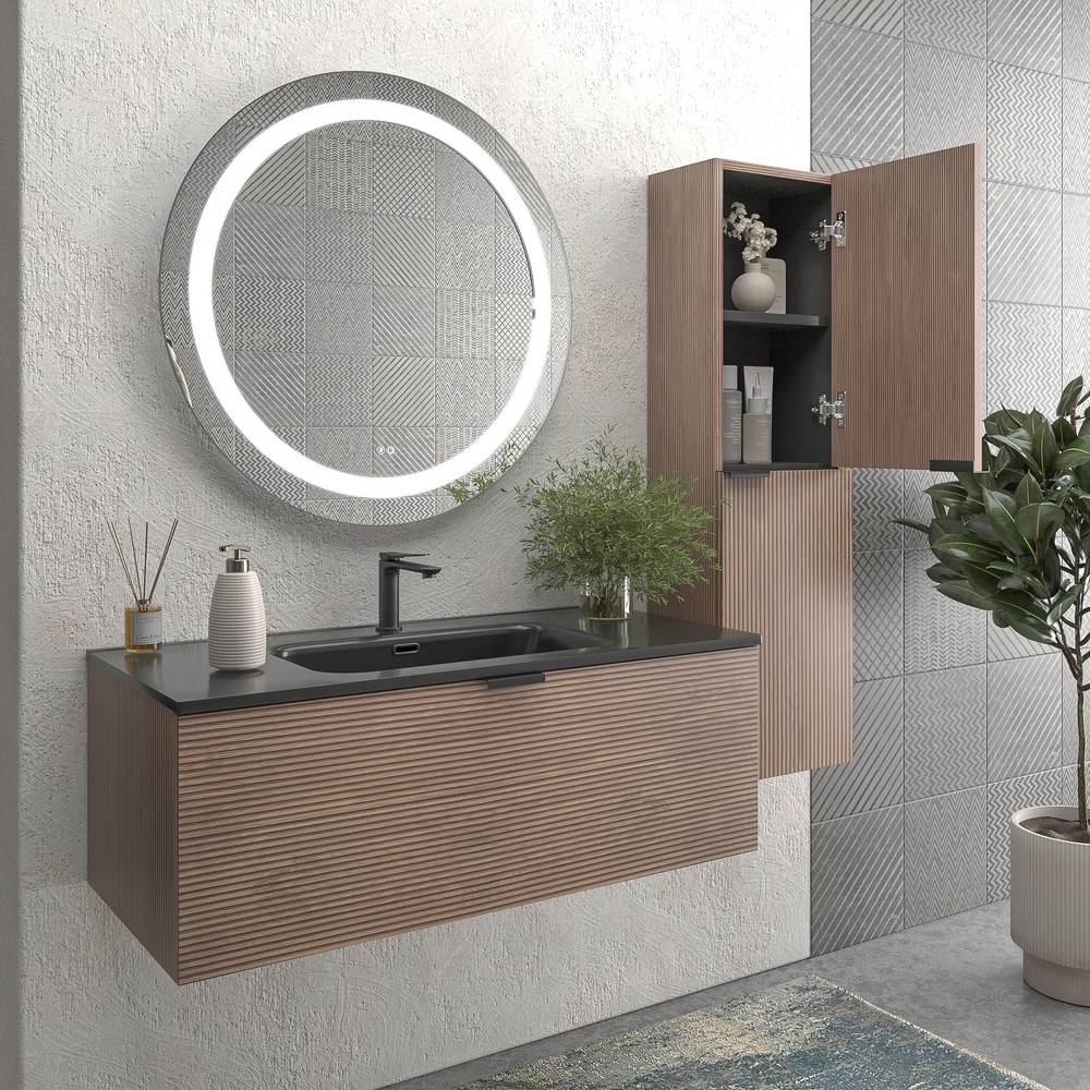 Colores: Esta disponible en 11 colores diferentes alcatraz, bastilla, cemento ,hormigón, mohave, olmo, polar, roble arizona, roble mozart ,roble ulloa, blanco, grafito, negro laminados para que puedas escoger y decorar tu baño. Tirador en aluminio en acabados gris, negro, blanco , oro , cobre a elegir.