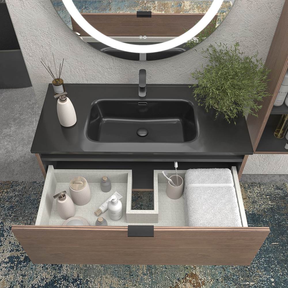 Composición: Este mueble incorpora lavabo de cerámica y si lo desea, un espejo liso de la serie luna de la misma medida de ancho que el mueble y altura de 80cm. No tendrás problemas en la elección del lavabo ya que lo incluimos compatible con el módulo. Este mueble de baño está compuesto por 1 cajón y con guías ocultas de de alta calidad, de cierre progresivo e interior textil para hacer más cómoda la apertura y cierre.
