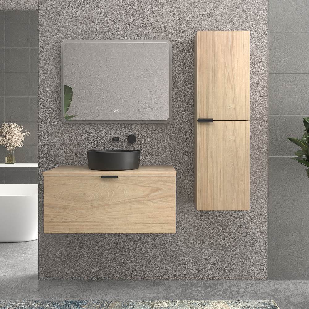 Medidas: Conjunto de mueble de baño suspendido con lavabo sobre encimera de cerámica resistente a altas temperaturas y golpes. Las medida del muebles son de 60, 70, 80 ,90 o 100 cm de ancho x 46 cm de fondo x 40 cm de alto. Es un conjunto barato y de muy buena calidad que cambiará por completo tu cuarto de baño.