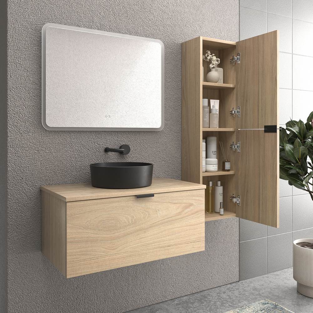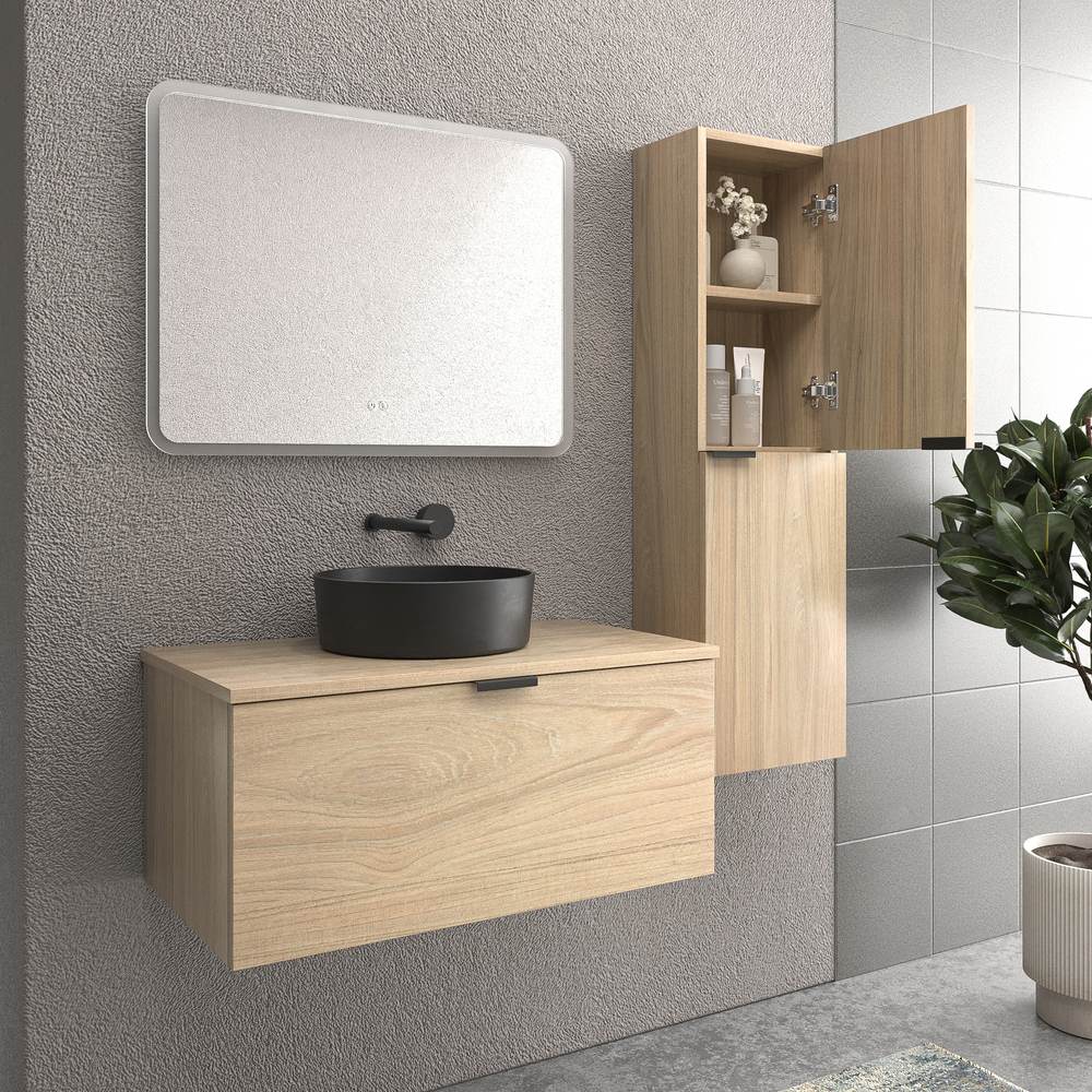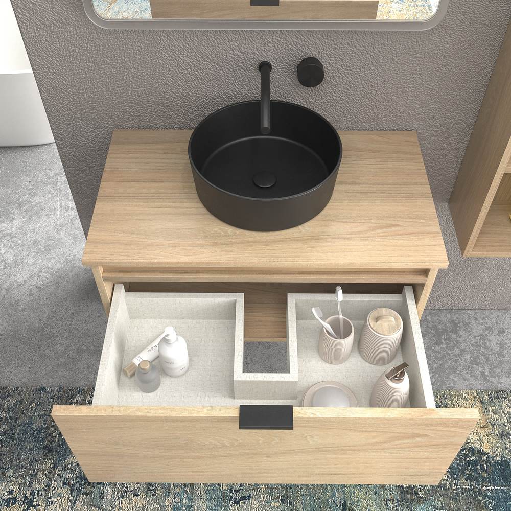 Composición: Este mueble incorpora lavabo de cerámica y si lo desea, un espejo liso de la serie luna de la misma medida de ancho que el mueble y altura de 80cm. No tendrás problemas en la elección del lavabo ya que lo incluimos compatible con el módulo. Este mueble de baño está compuesto por 1 cajón y con guías ocultas de de alta calidad, de cierre progresivo e interior textil para hacer más cómoda la apertura y cierre.