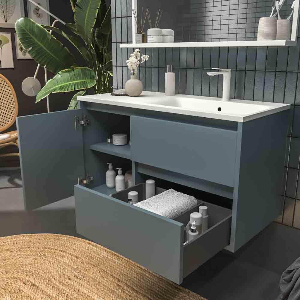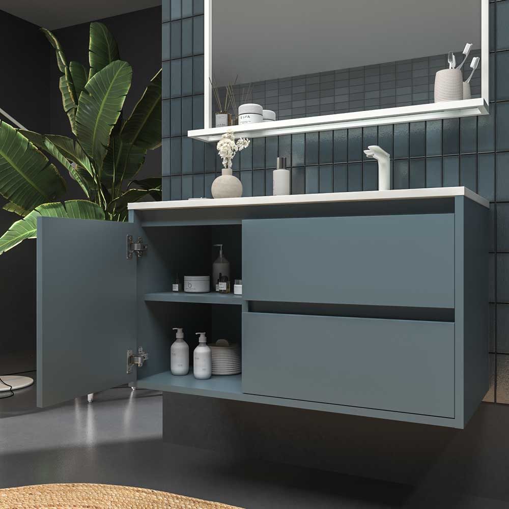 - Fácil de instalar: ya viene todo ensamblado. Al ser un mueble suspendido, podrás tenerlo bien adosado a la pared, disfrutando de espacio suficiente para limpiar debajo y una perfecta consistencia.