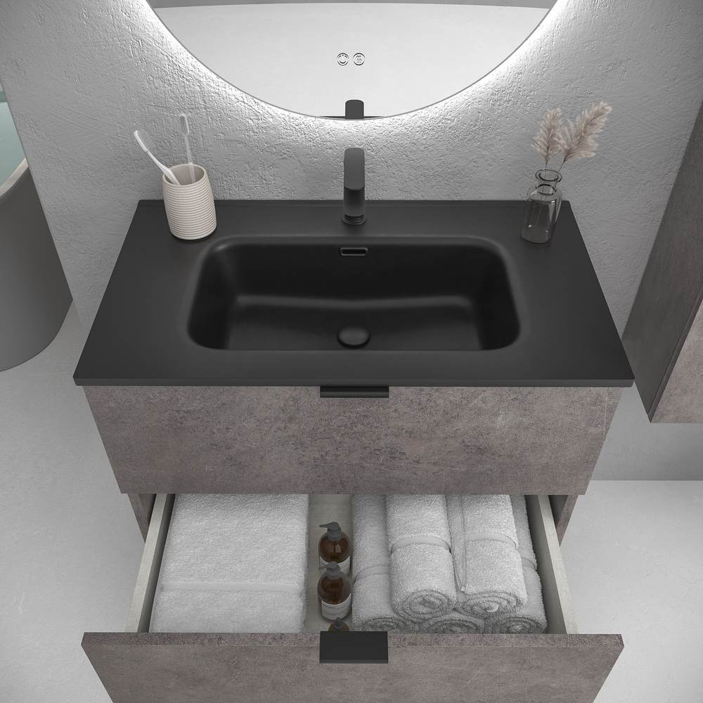 Colores: Esta disponible en 11 colores diferentes alcatraz, bastilla, cemento ,hormigón, mohave, olmo, polar, roble arizona, roble mozart ,roble ulloa, blanco, grafito, negro laminados para que puedas escoger y decorar tu baño. Tirador en aluminio en acabados gris, negro, blanco , oro , cobre a elegir.