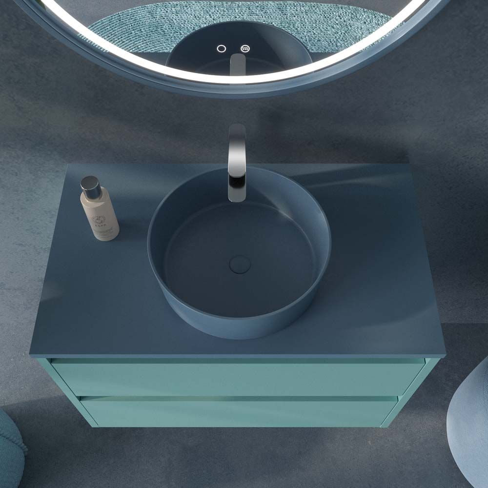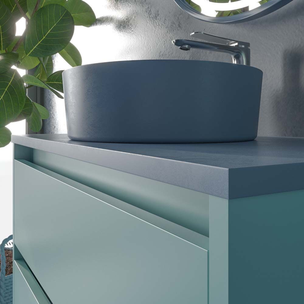 Mueble de baño suspendido 2 cajones CLAIRE con lavabo Solid Surface TURQUESA PASTEL