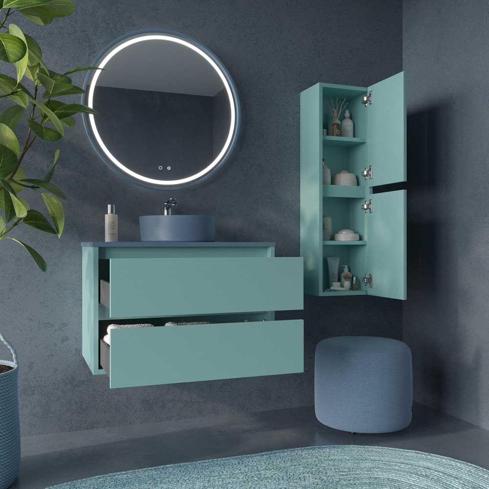 • Añade tu mueble auxiliar, columna de baño, apliques de luz o espejo para crear un ambiente armónico y uniforme.