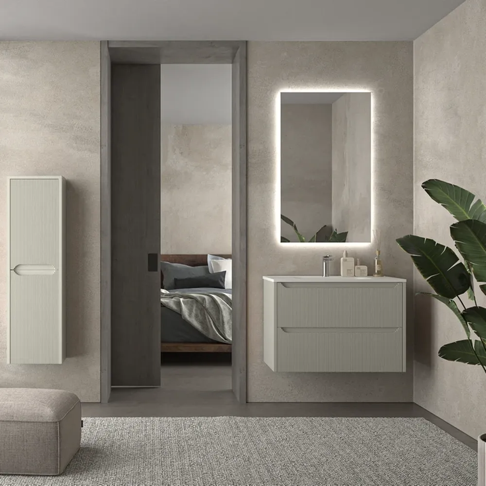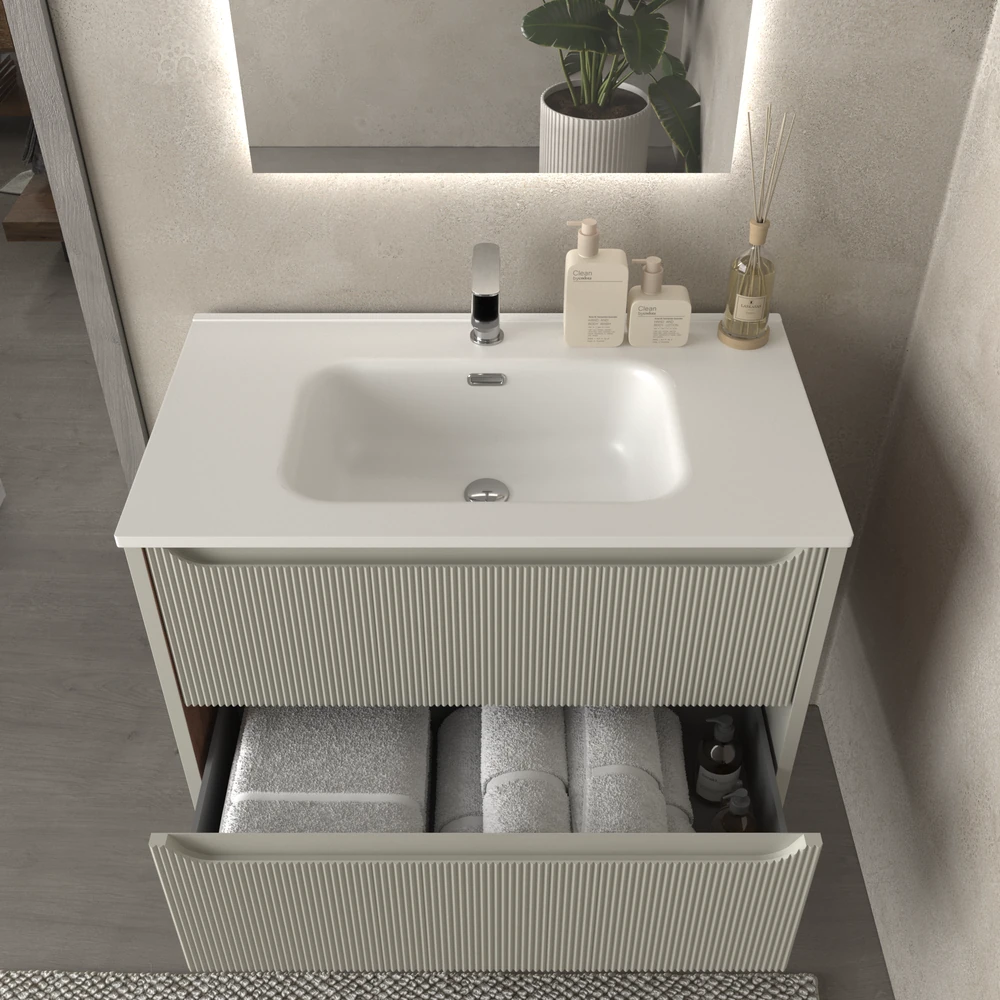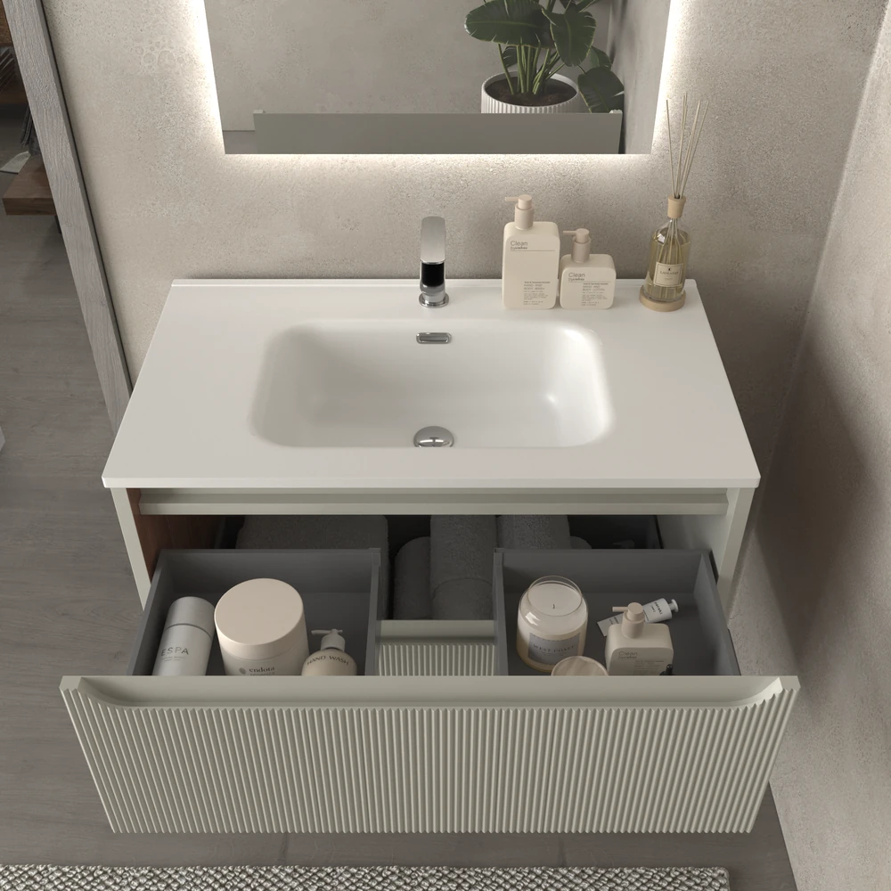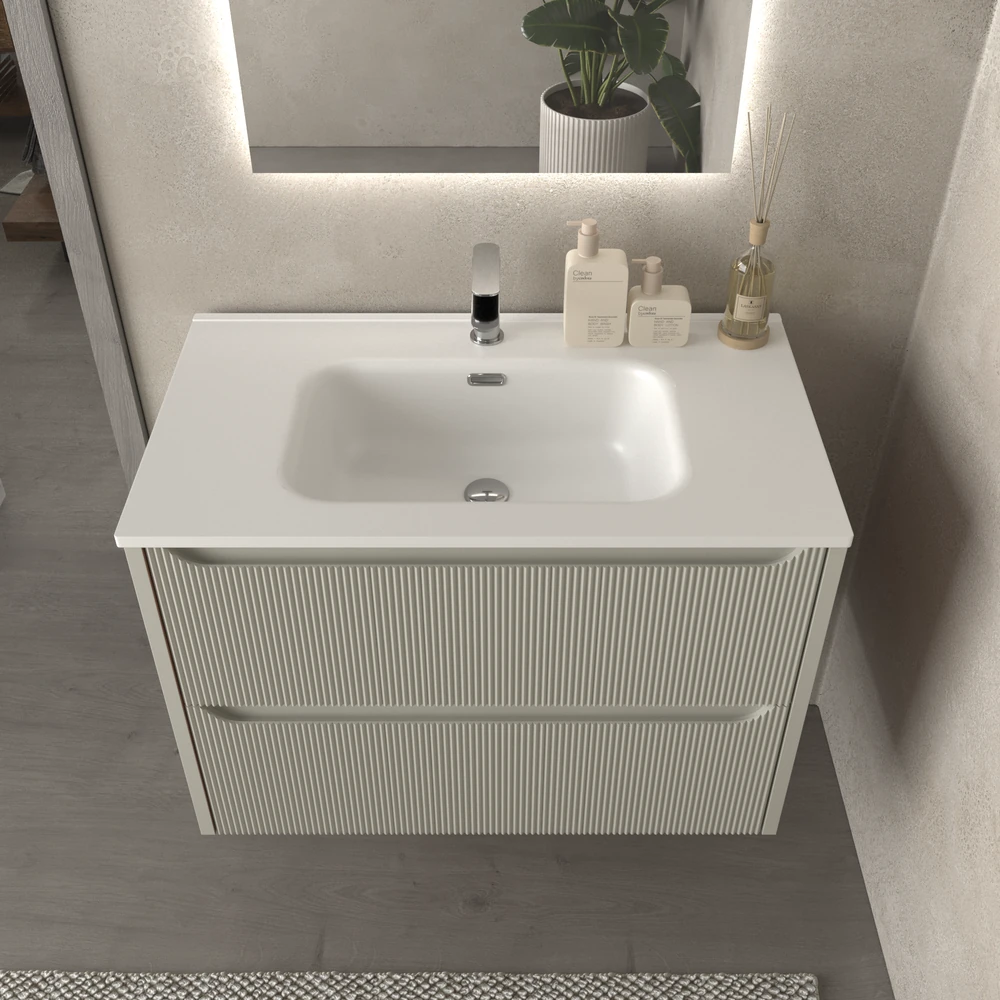 • Incluye Mueble polilaminado efecto seda mate  + Lavabo porcelana