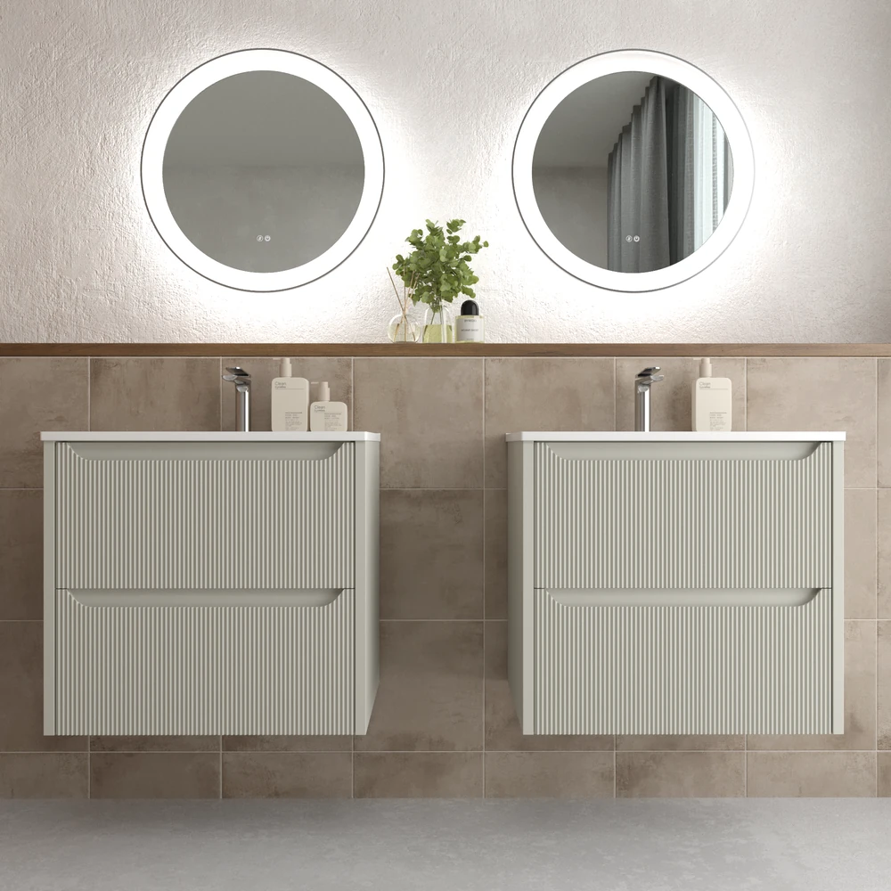 Mueble de baño suspendido 2 cajones TOSCANA con lavabo porcelana acabado millerigue GRIS SEDA
