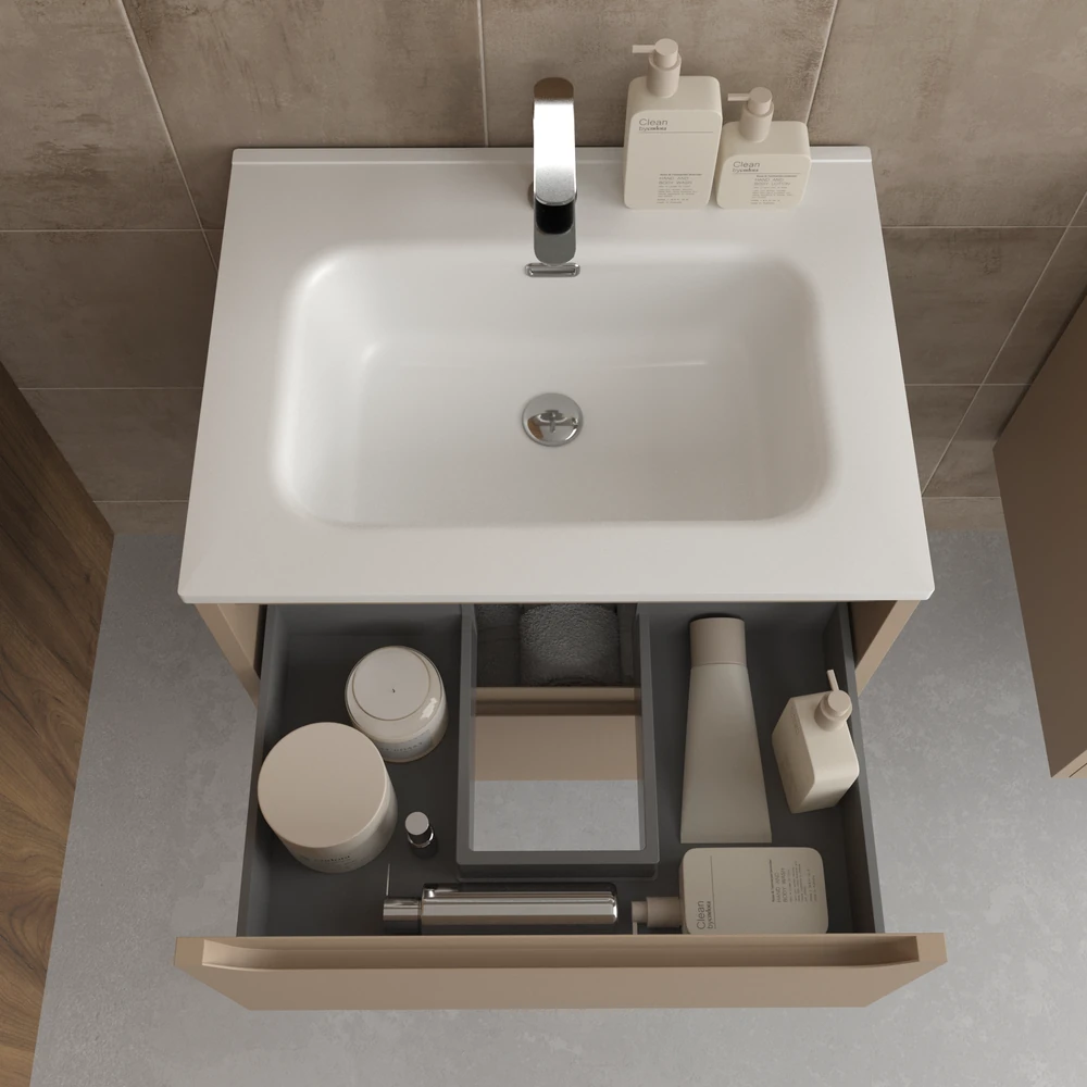 Composición: Modeares escoge los materiales más sofisticados y resistentes para la fabricación de sus muebles. Este lo ha hecho en MDF de última generación y de alta calidad. El acabado es mate antibacteriano. El tirador que presenta el módulo está integrado en el frente con un diseño único. Su fabricación se compone por 2 cajones de extracción total equipados con guías con cierre progresivo amortiguado y freno(Sistemas de auto cierre y freno). Interior con acabado grafito . Este sistema evitará golpes innecesarios en tu mueble y su durabilidad aumentará.