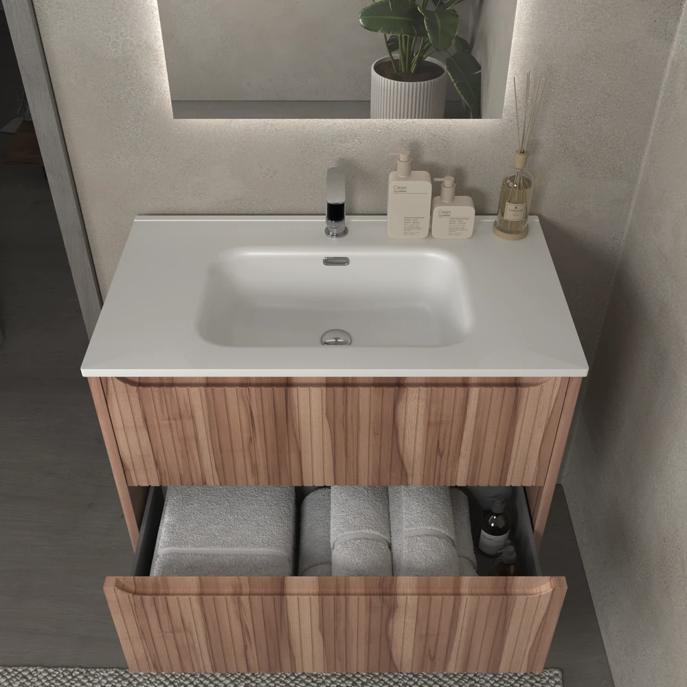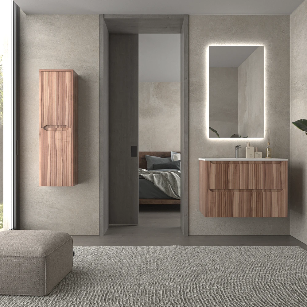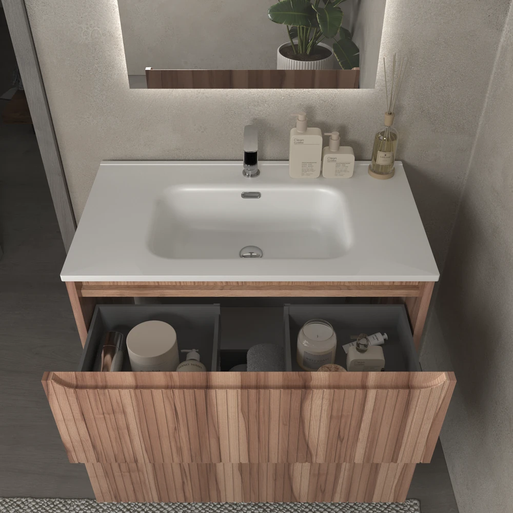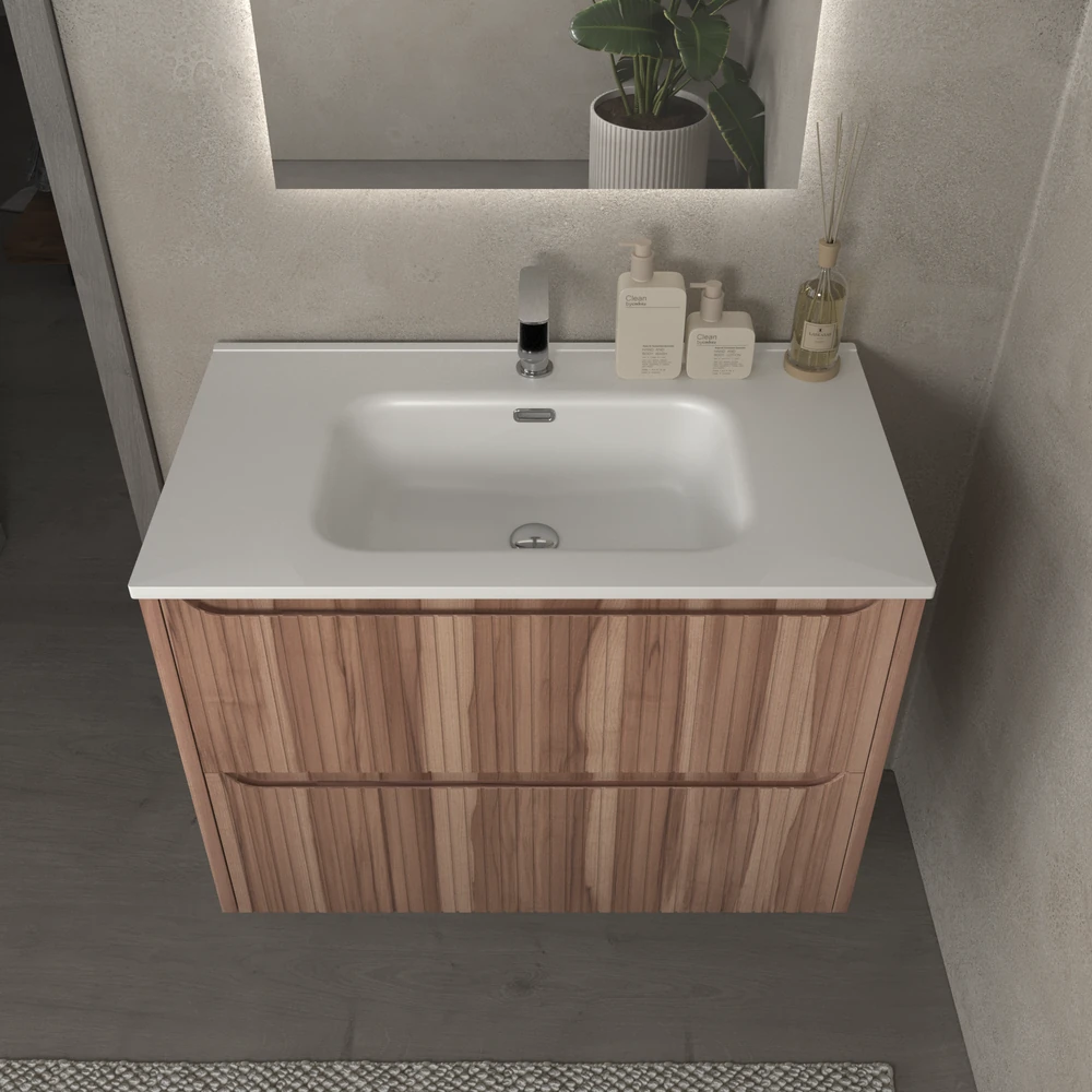 • Incluye Mueble polilaminado efecto seda mate  + Lavabo porcelana