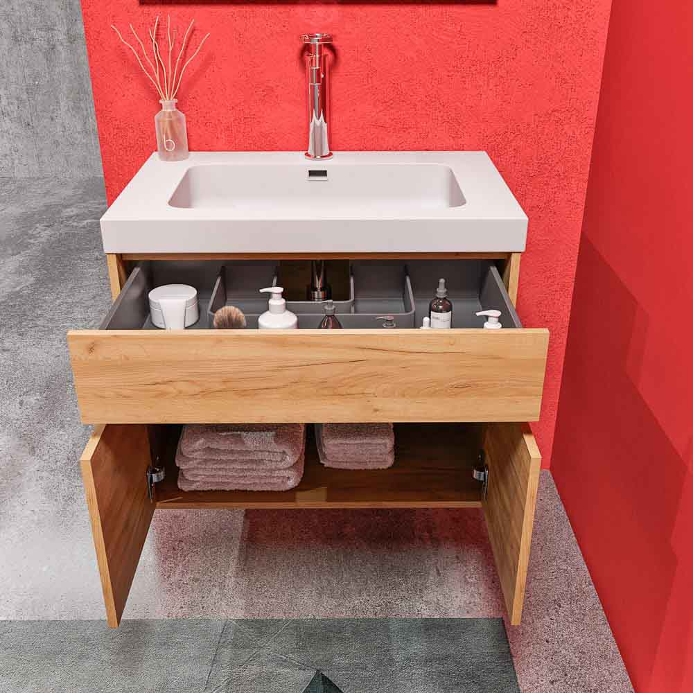 - Fácil de instalar: ya viene todo ensamblado. Al ser un mueble suspendido, podrás tenerlo bien adosado a la pared, disfrutando de espacio suficiente para limpiar debajo y una perfecta consistencia.
