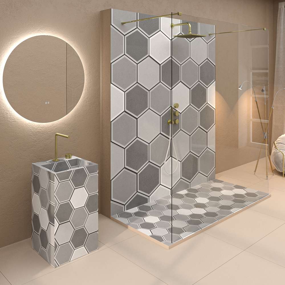 Panel de revestimiento para paredes de baño con material MSCOMPACT laminado de alta presión (HPL) con un espesor de 4 mm, según EN438 .El nucleo esta compuesto por láminas de papel kraft impregnadas con resinas termoendurecibles.La superficie de ambas caras es de papel impregnado con resinas termoendurecibles aminoplásticas .Todas las capas se unen medidante un proceso de alta presión y alta temperatura para obtener un material homonogéneo de alta densidad. Es CGS hidrofugo y CFG ignofugo.Panel de fácil instalación y limpieza.Producto ecológico , hecho con materiales sostenibles. Características :