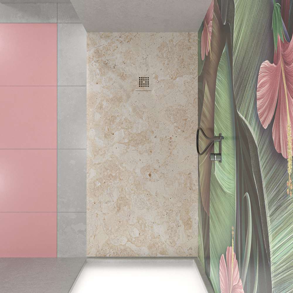 Panel de revestimiento para paredes de baño  con material MSCOMPACT laminado de alta presión (HPL) con un espesor de 4 mm, según EN438 .El nucleo esta compuesto por láminas de papel kraft impregnadas con resinas termoendurecibles.La superficie de ambas caras es de papel impregnado con resinas termoendurecibles aminoplásticas .Todas las capas se unen medidante un proceso de alta presión y alta temperatura para obtener un material homonogéneo de alta densidad.  Es CGS hidrofugo y CFG ignofugo.Panel de fácil instalación y limpieza.Producto ecológico , hecho con materiales sostenibles. Características :