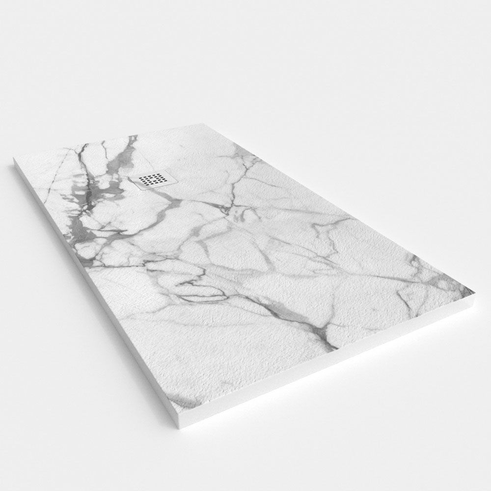 El plato STONE 3D esta  fabricado de resina y cargas minerales. El revestimiento está realizado con Gel-Coat lo cual hace que la superficie del plato sea no porosa, es decir, nula absorción de agua lo que ayuda a que el plato no presente moho con el paso del tiempo. Esta composición le otorga al plato un grosor de 3 cm con un tacto cálido y agradable.Una línea diferente y creativa ya que simula el acabado del mármol en diversos colores.El plato de ducha se puede fabricar a medida . El acabado diversos colores otorgará a tu baño un ambiente natural y agradable diferente a lo que ya habías visto. Se realiza sobre una base de masa coloreada en los tonos de nuestra carta de color que más se adecúe al diseño, a la que se aplica en la cara superior  un sistema de digitalización propio, un diseño que ofrece infinitas posibilidades de personalización y de durabilidad garantizada gracias a su recubrimiento con GEL COAT.Es un plato de ducha con textura pizarra pero con con un nivel de antideslizamiento C3 el mas alto del mercado. Es muy resistente a golpes y rayado con una dureza en la escala Barcol de 45. Resistencia altas temperaturas. Este plato te durará toda la vida.Una de las notas importante del plato es que su superficie es antibacteriana ya que está realizado con agentes químicos que impiden que los hongos permanezcan en la superficie.En el precio está incluido la válvula 90 y rejilla del mismo acabado que el plato de ducha sin coste adicional.PODEMOS FABRICAR CUALQUIER DISEÑO, CONSULTANOS.Características: