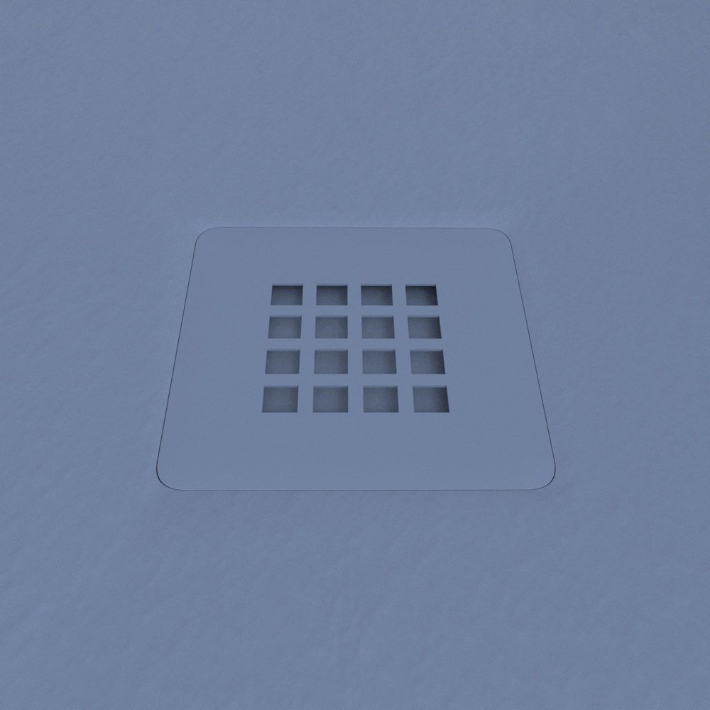 Plato ducha resina CLOE Azul Colombino RAL 5014 con textura pizarra antibacteriano y antideslizante. Rejilla termolacada